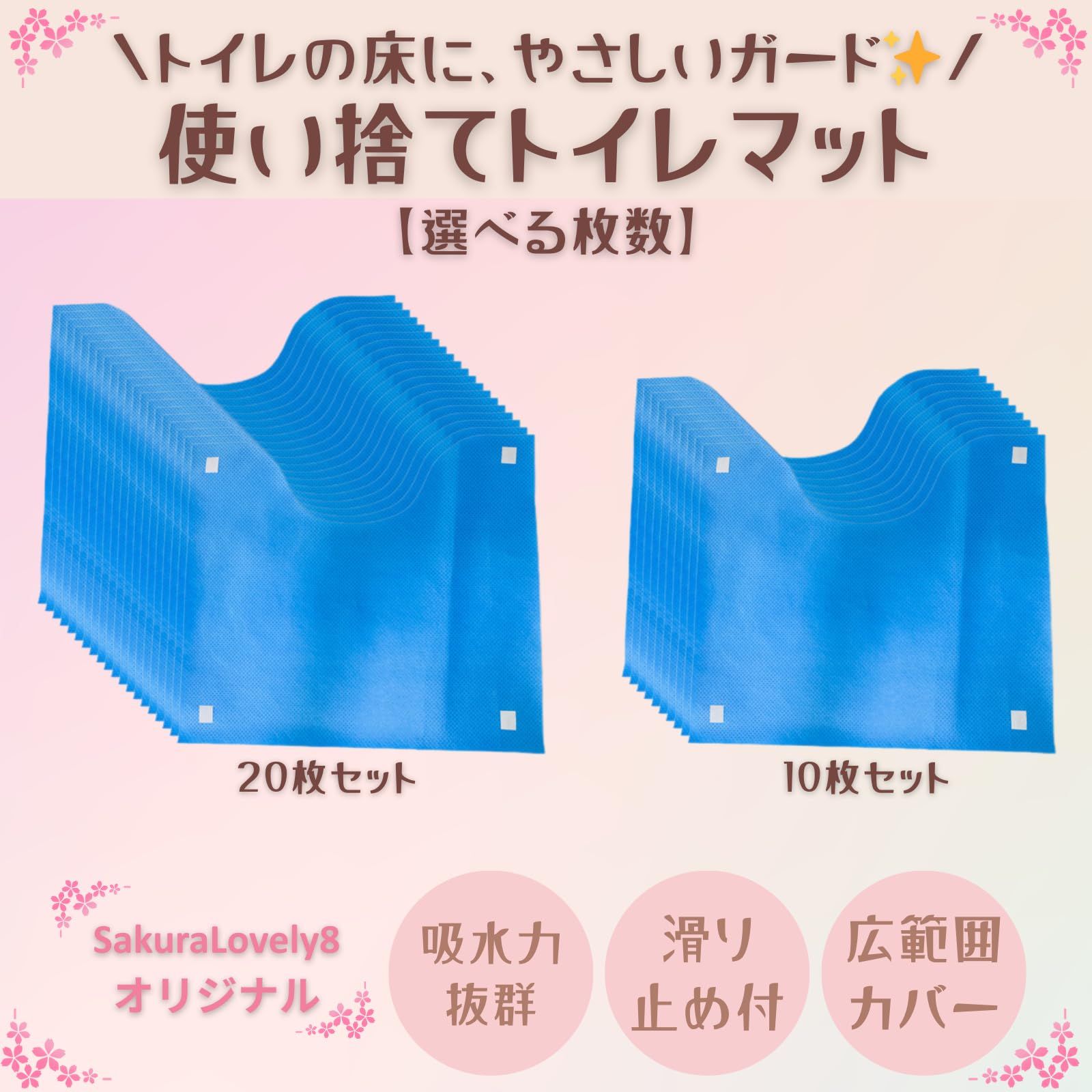 SakuraLovely8 トイレマット 使い捨て 滑り止め 介護 吸水 汚れ防止 トイレトレーニング ブルー (10枚セット) [10枚セット]