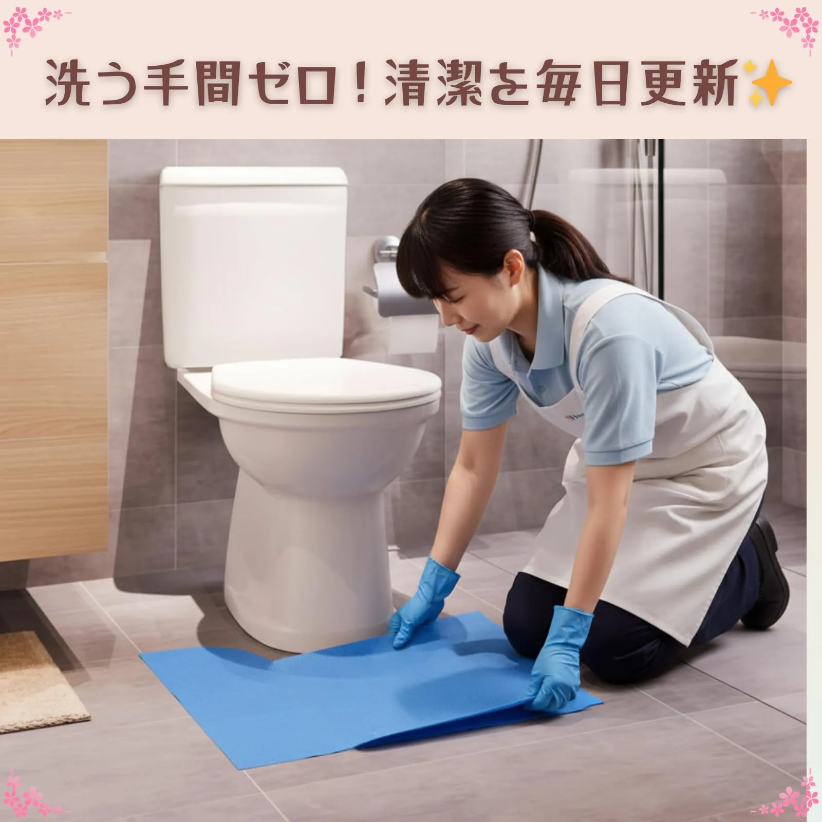 【汚れたら捨てるだけ!抜群の吸水性と防水加工で床を徹底保護】SakuraLovely8の使い捨てトイレマットは、高吸水性の不織布を採用しており、飛び散ったおしっこや水分を瞬時にキャッチして逃しません。裏面には防水・撥水加工を施しているため、吸収した尿が床まで染み出すのを防ぎ、フローリングやタイルの変色、ニオイの染み付きを強力にガードします。汚れたらそのまま可燃ごみとして処理できるため、面倒な洗濯の手間から解放され、毎日忙しいご家庭や、衛生管理が重要な施設でも常に清潔な環境を手軽に維持することが可能です。