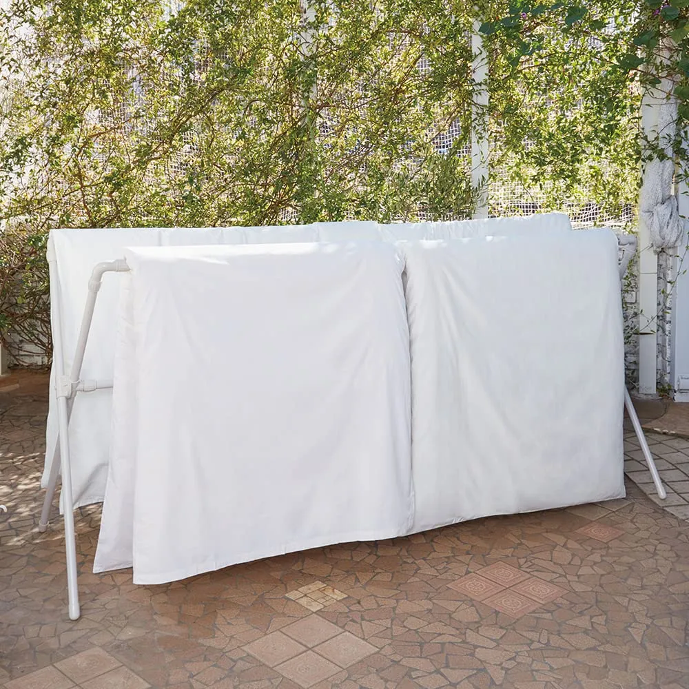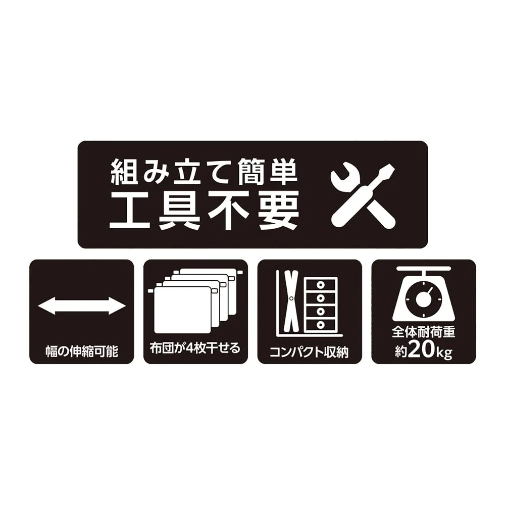 シングルサイズのふとんが4枚干せる。