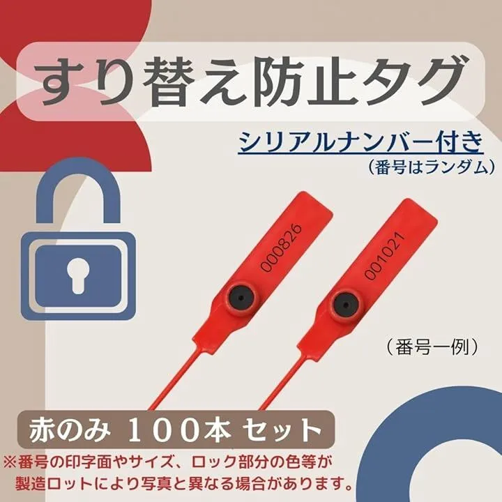 3world すり替え防止 タグ プロテクションタグ 番号 フリマ 詐欺対策 不正開封防止タグ MSW2713 (赤(100本), 275mm x 15mm)
