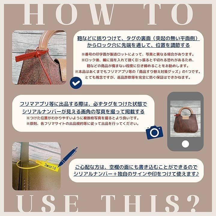 すり替え防止 タグ プロテクションタグ 番号 フリマ 詐欺対策 不正開封防止タグ こちらのタグは、一つ一つにシリアルナンバーが付いており、フリマアプリでのすり替え防止に役立ちます。