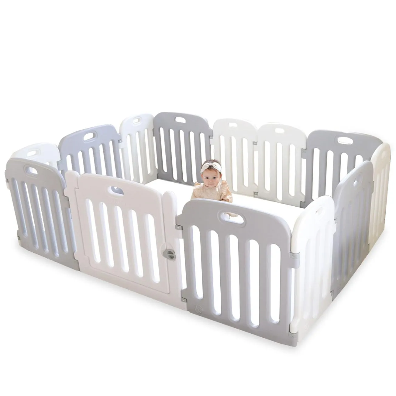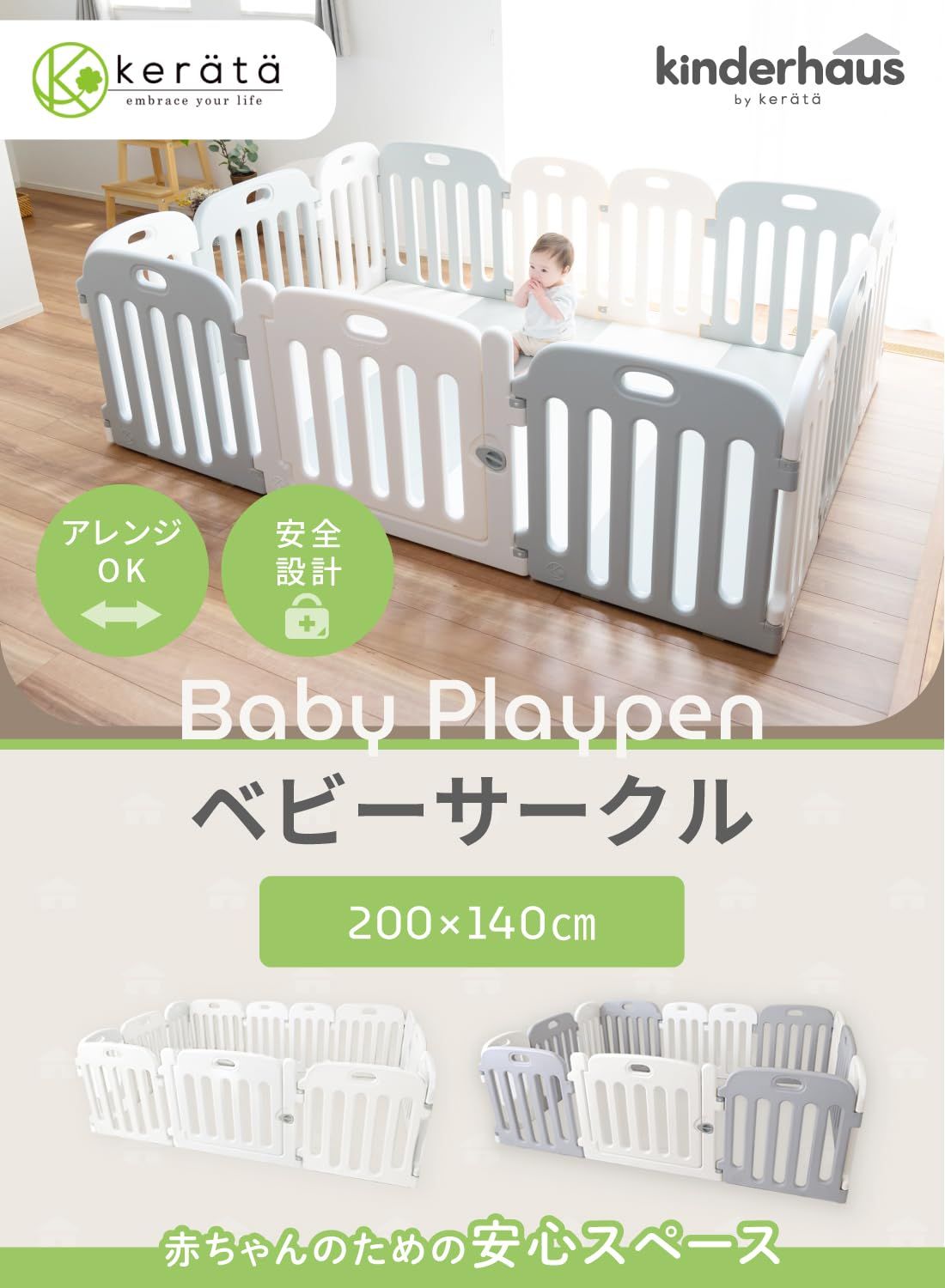 新品 (ケラッタ) ベビーサークル 赤ちゃん 組み立て簡単 形のアレンジ自在 ベビー 扉付き (200×140cm グレー×ホワイト)