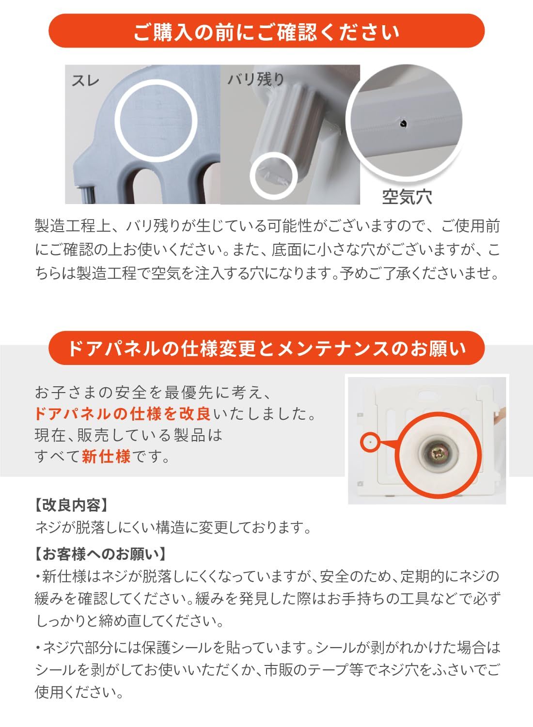 【注意事項】・使用前に必ず点検を行い、部品のゆるみや破損、故障がないことをご確認ください。・必ず保護者のもとで遊ばせ、お子様の行動には十分注意を払ってください。・お子様がパネルの隙間に手や足を入れないように注意してください。ケガの原因になります。 ・ベビーベッドやパーテーションとして使用しないでください。・ドアパネルには、ネジに指が触れないようネジ穴を覆うシールを貼っています。 万が一、シールが剥がれかけた場合は誤飲の原因になるため、シールを剥がしてお使いいただくか、市販のテープ等でネジ穴をふさいでご使用ください。 最後まで確認ありがとうございました。 注意点 ・配送会社の指定はできかねます。 ・営業所止めは受けておりません ・ご注文後のお問い合わせはメッセージよりお願い申し上げます。