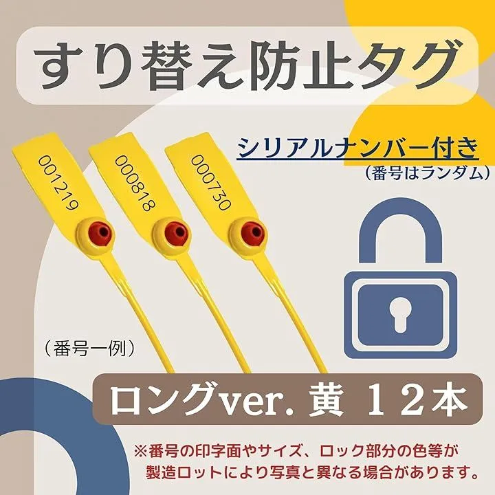 3world すり替え防止 タグ プロテクションタグ 番号 フリマ 詐欺対策 不正開封防止タグ MSW2698 (黄ロング(12本), 400mm x 20mm)