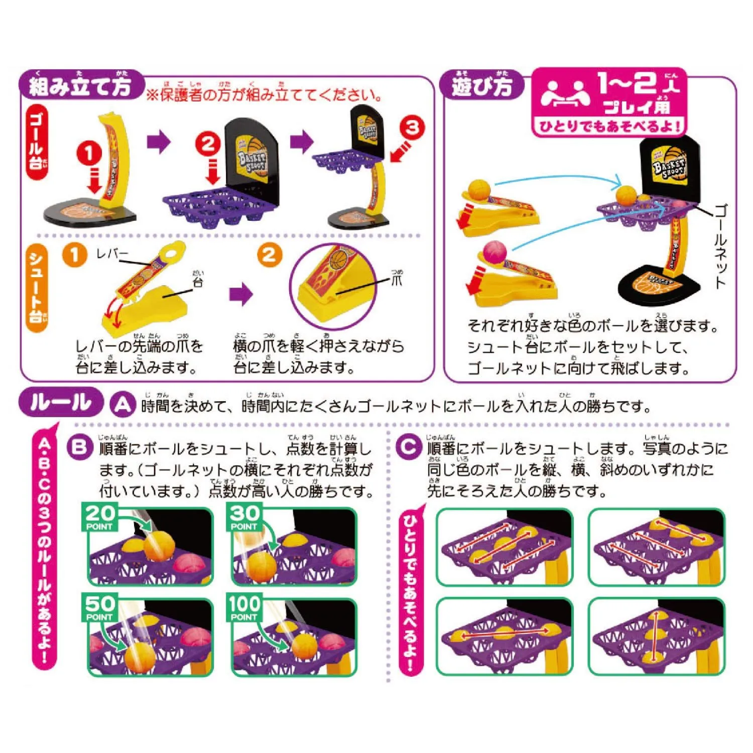 ●シュート台を使って、ボールを飛ばしてゴールネットに入れて遊ぶバスケットボールゲーム
