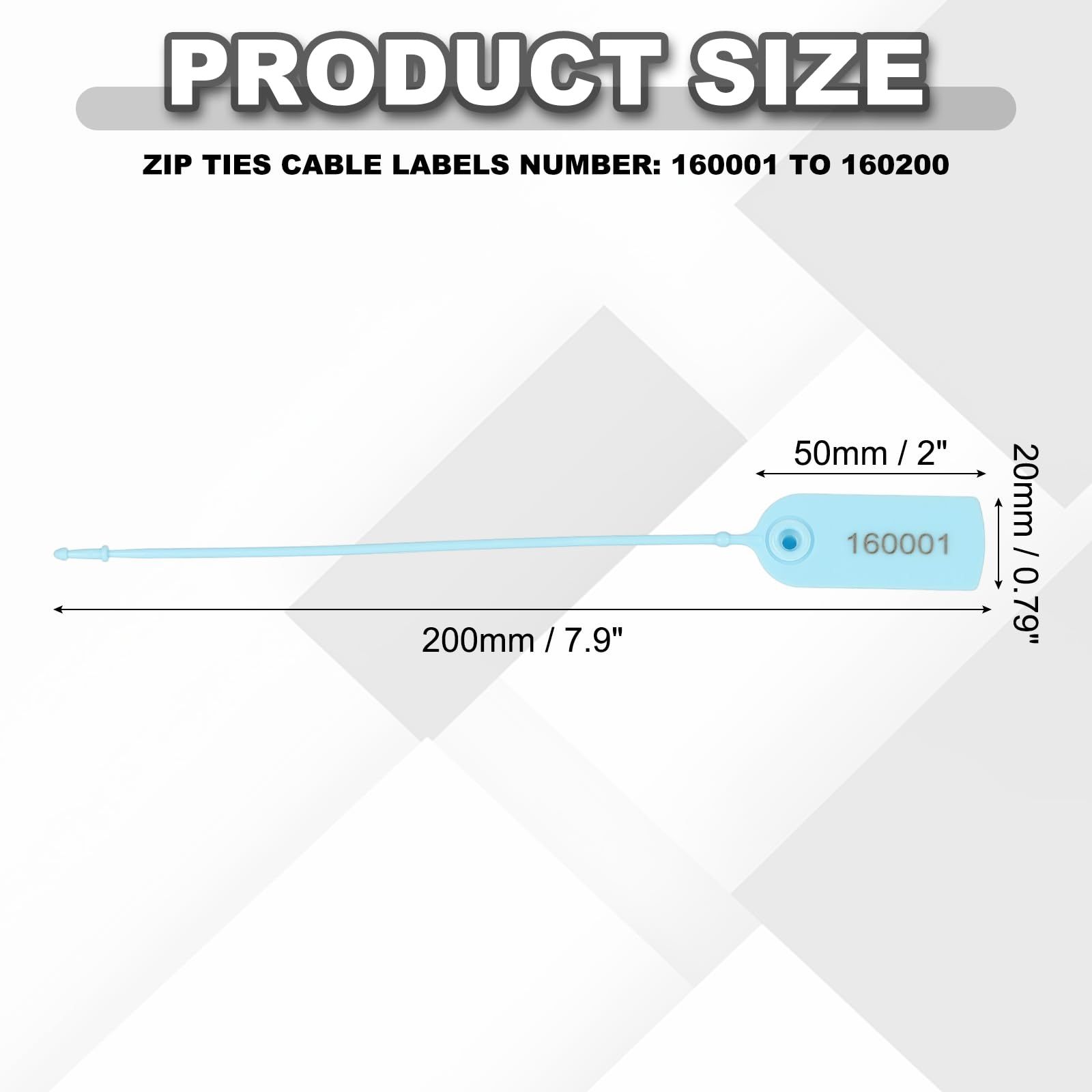 新品 PATIKIL 200個 プラスチック封印 プラスチックセキュリティ封印使い捨て番号付きジップタイ安全タグケーブルラベル自己ロック在庫ラベリング衣類看板しゅっか ブルー