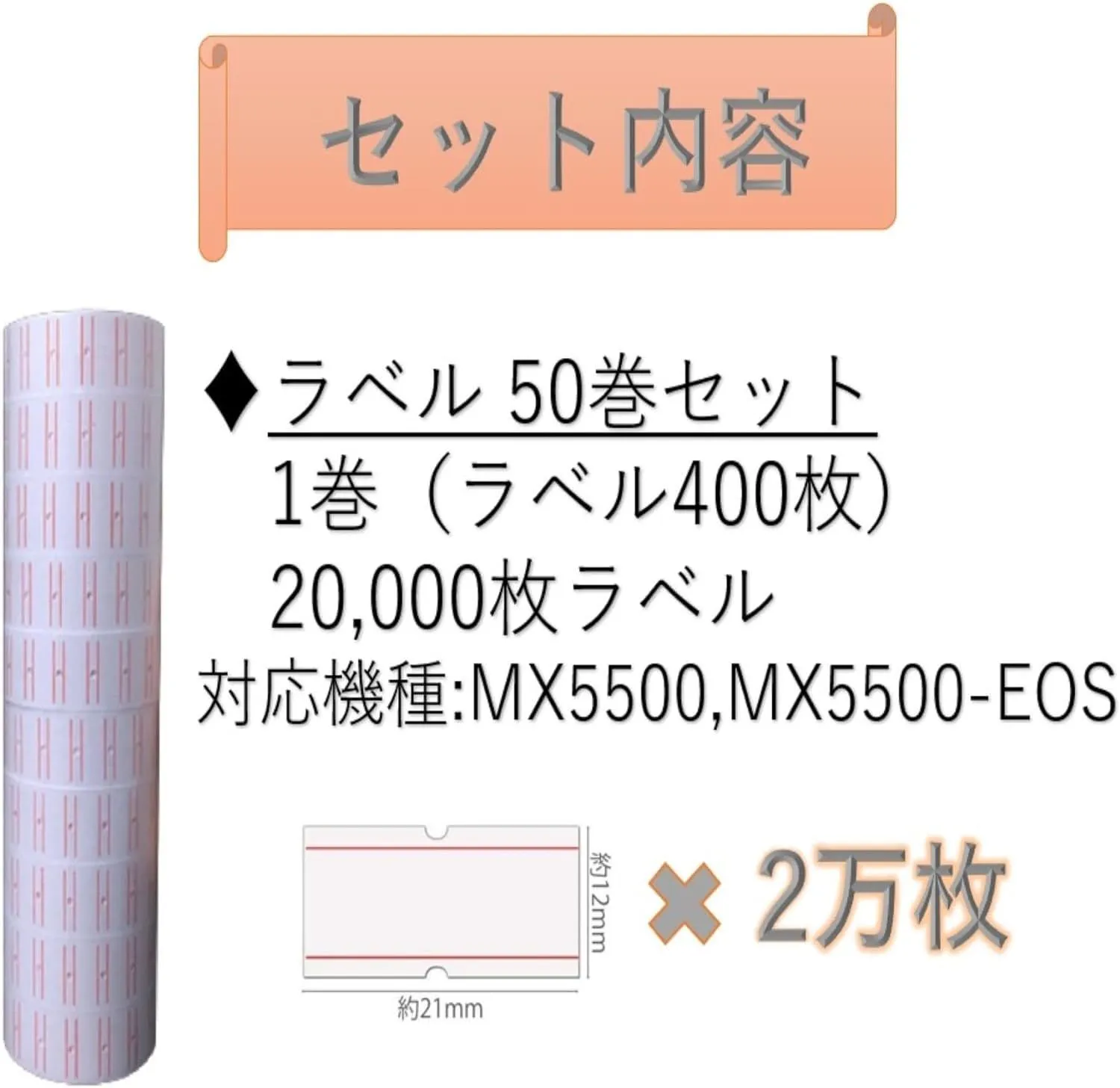 【400枚】全50巻付属 = 20000枚 ラベルシール MX-5500、MX5500-EOS ハンドラベラー に対応 ラベル サイズ12x21mm 国内標準サイズ スーパー、小売店の価格表示、食品の期限表示用 として幅広く活躍します 色 ラベル10巻 × 5セット サイズ 12x21mm ブランド Iwamatu 仕上げタイプ つや消し ラベルの数 20000 最後までご確認頂き誠にありがとうございました。 上記をご確認頂き、ご購入いただけましたら幸いです。 何かご不明な点がございましたらお気軽にメッセージからお問い合わせ下さい。