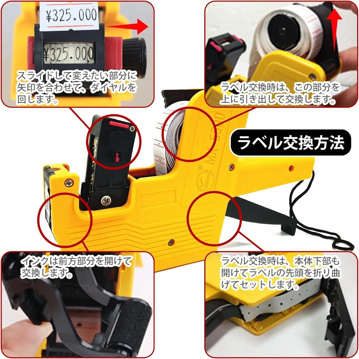 ハンドラベラー 業務用+ ラベル 10巻 プライス タグ 軽量タイプ 値札 賞味 期限 (ラベル10巻 × 5セット)