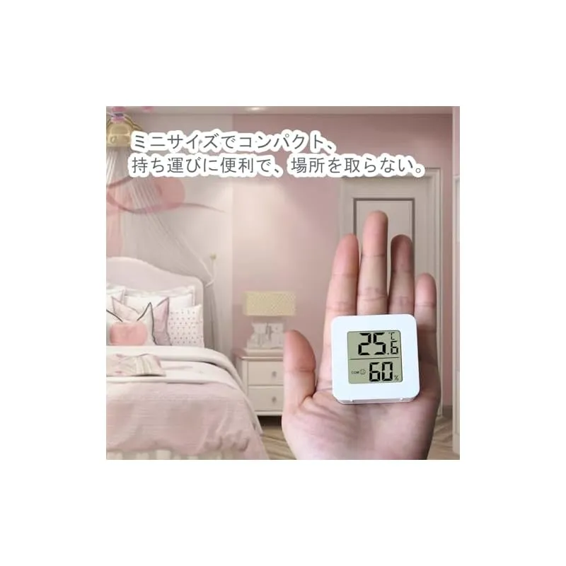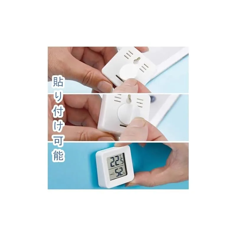 【操作が簡単】ワンタッチで温度・湿度が表示され、誰でも簡単に使用できます。再配置が簡単で、設置方法も卓上型と粘着型の2種類の選択肢があります。