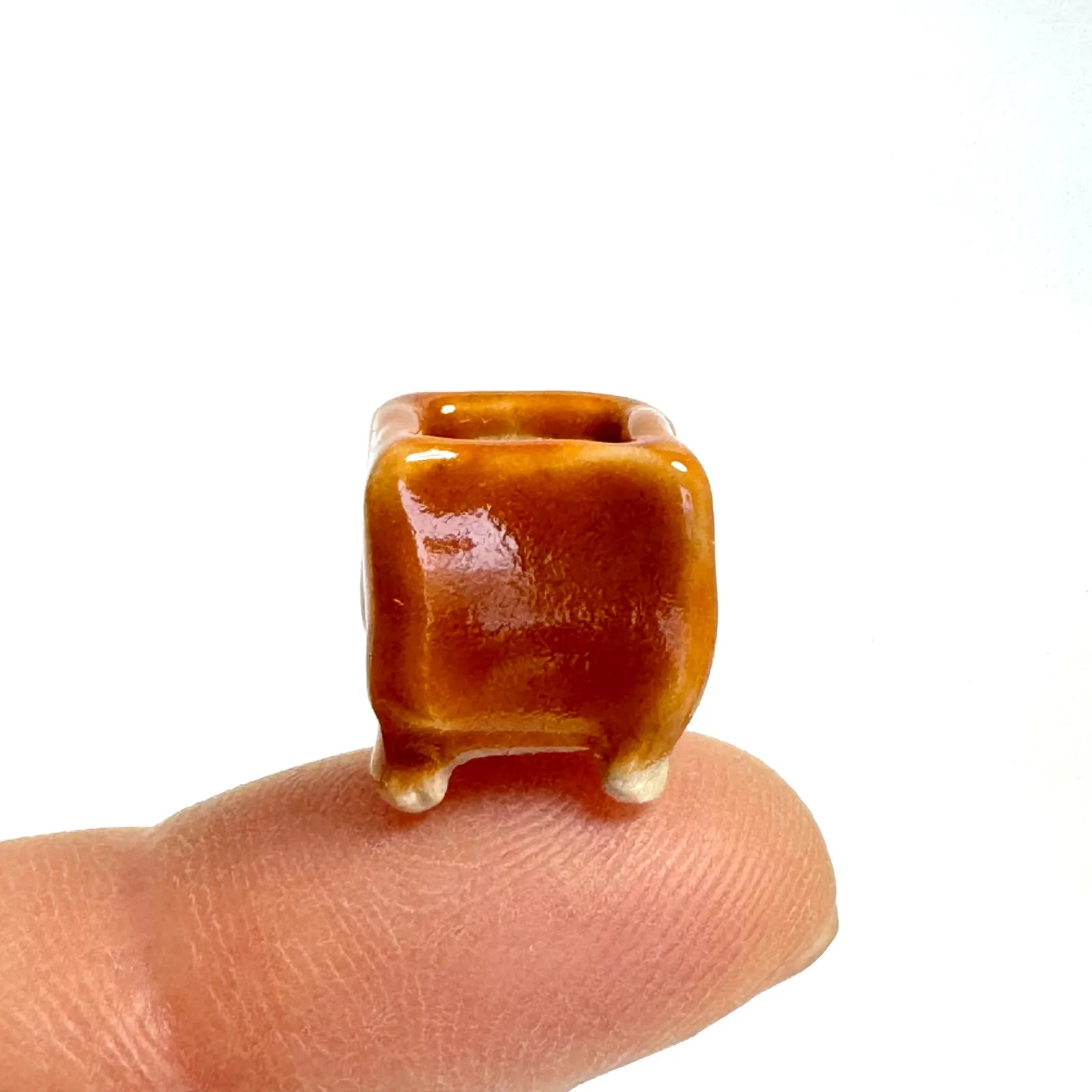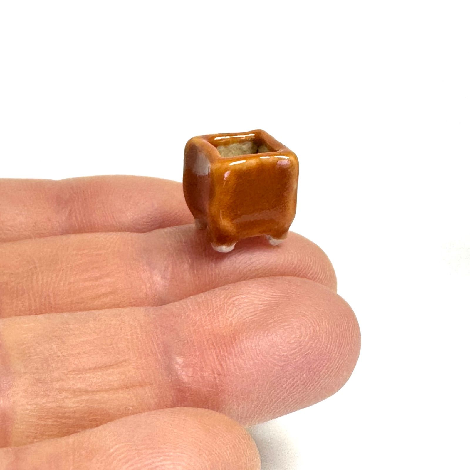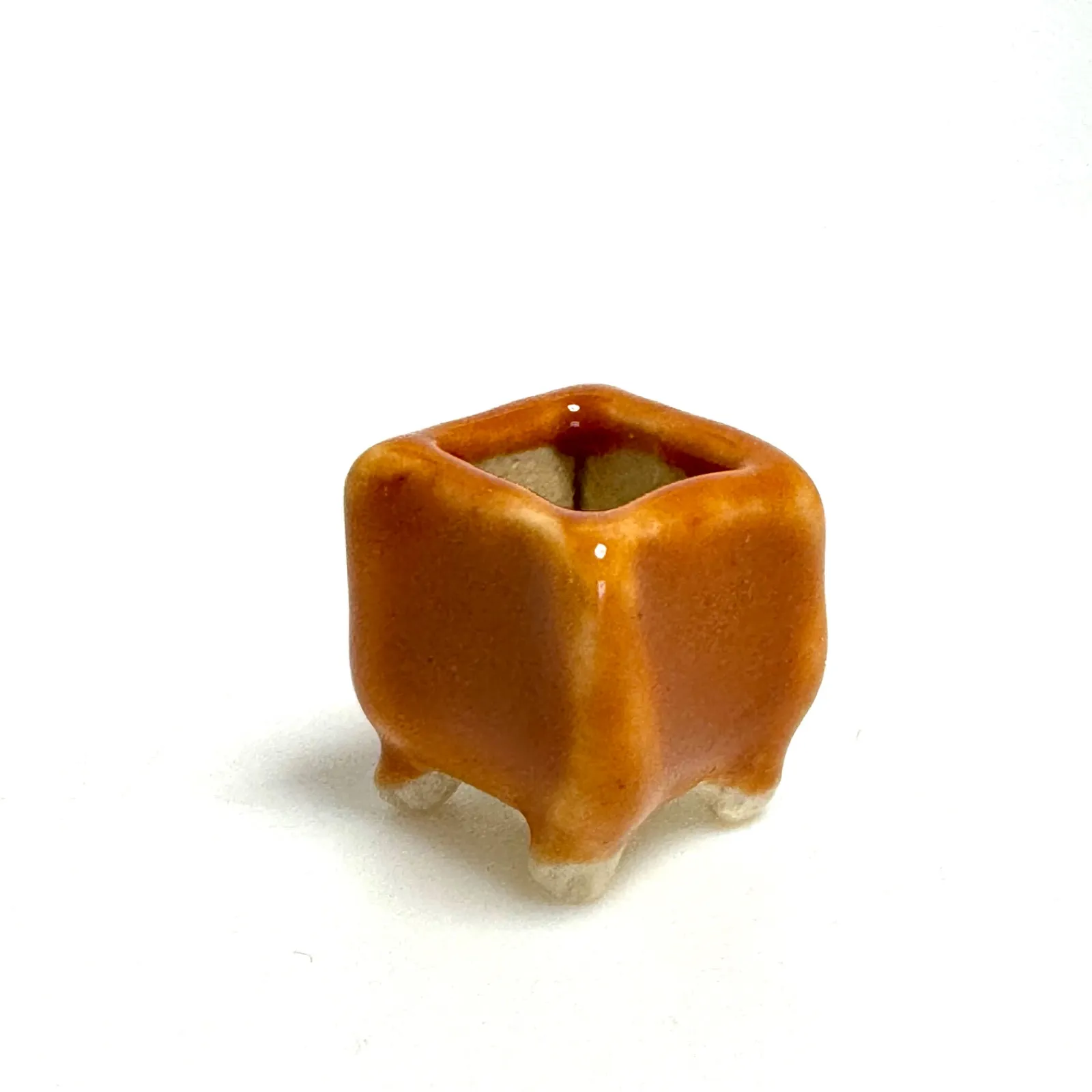 0402B超ミニミニサイズ豆盆栽鉢【橙色正方鉢】