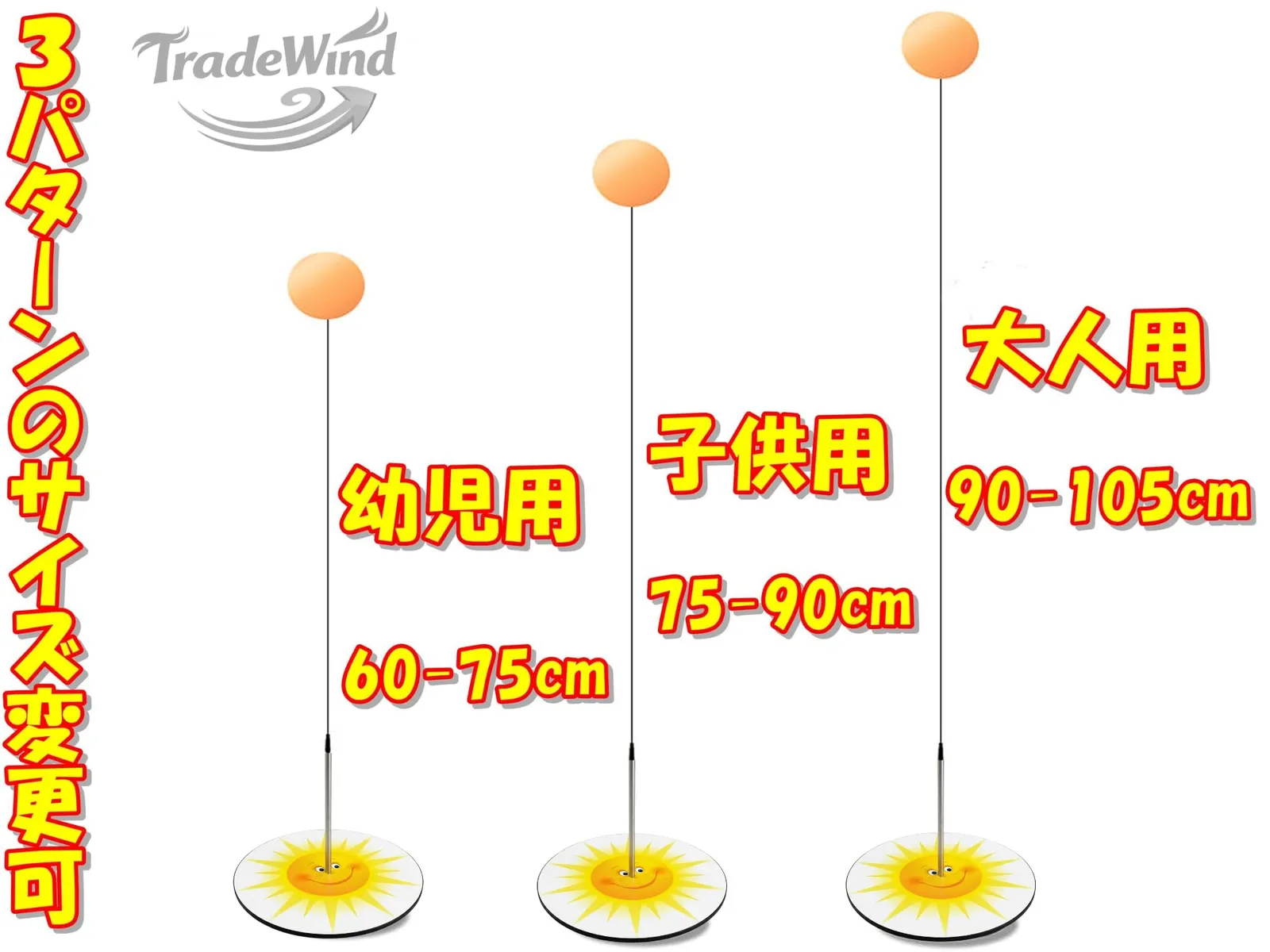 【反復練習に最適な設計】 弾力性のあるワイヤ軸が180度リバウンドし、打球後すぐに戻ってくるので、球拾い不要で連続練習が可能。 ワイヤ長さは60cm・75cm・90cmの3段階調節式で、お子様から大人まで身長や打点に合わせて調整できます。 集中練習にも長時間の遊びにも対応した耐久設計です。✅