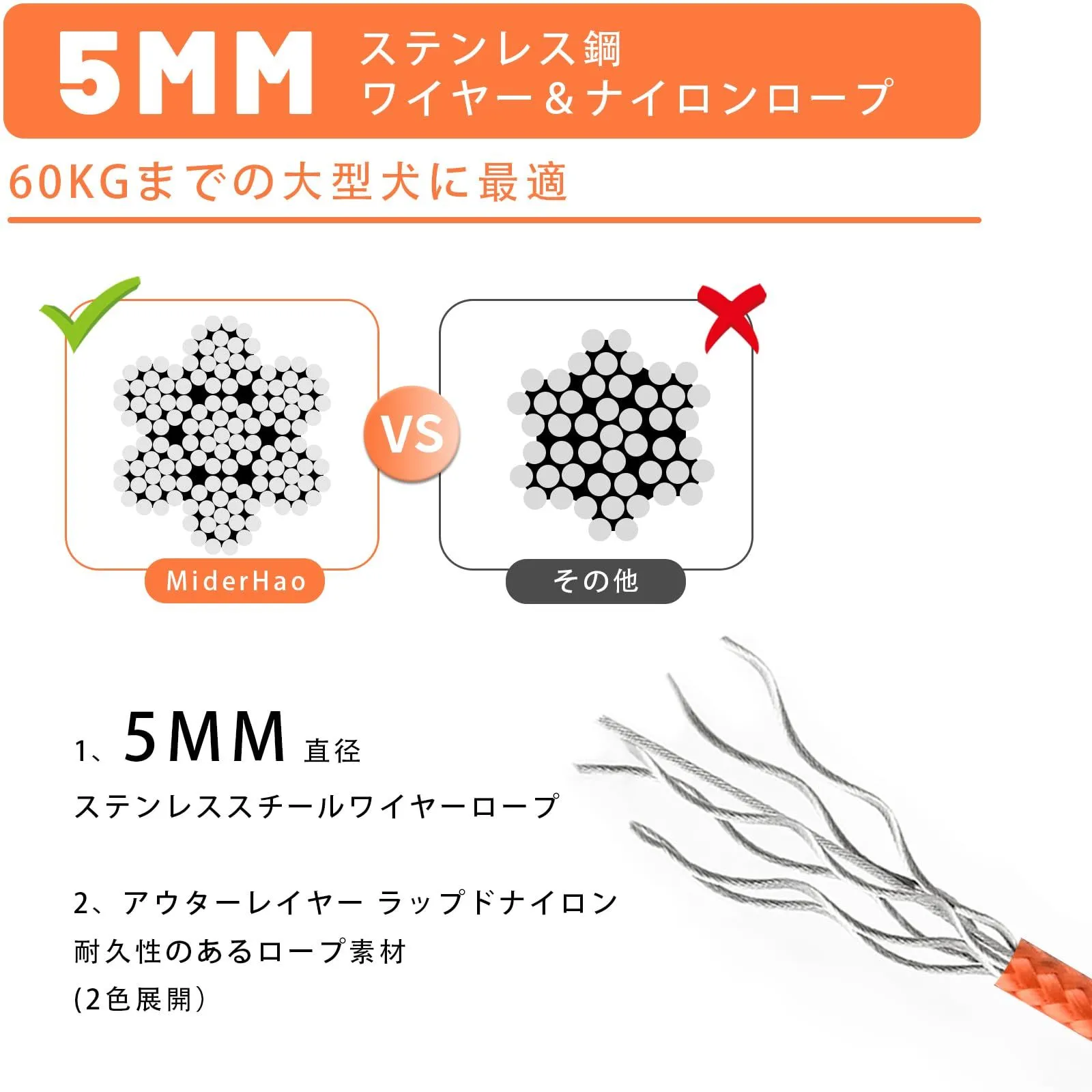 耐久性のある素材を使用しています:スチールケーブルは非常に強く、柔らかいPVC保護チューブに包まれ、耐久性、防錆、高強度抗噛み、犬に引き裂かれることは容易ではなく、より長い期間使用することができますの