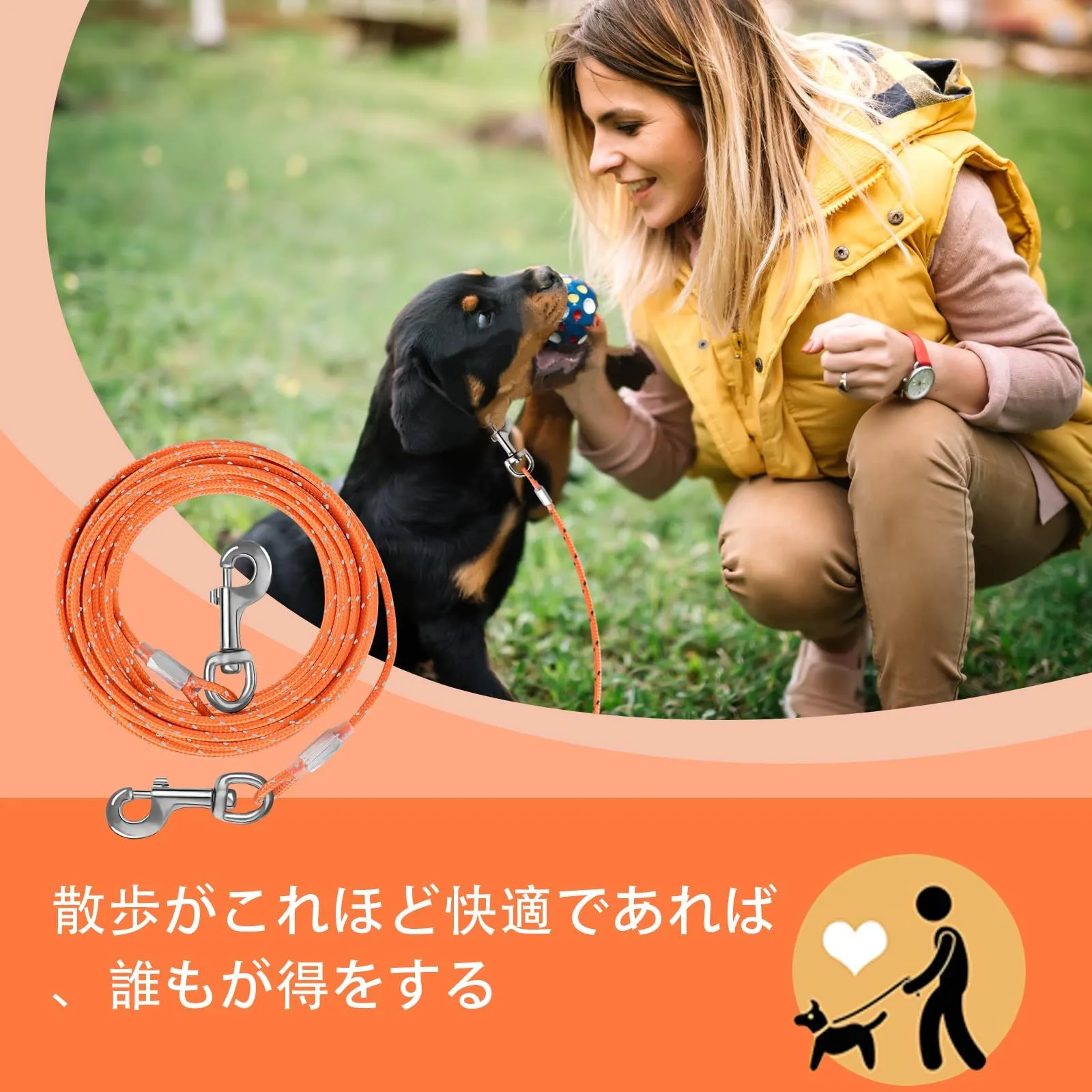 アドバンスド・クリップ:回転クリップは360°回転することができ、あなたの犬が絡まることなく移動するためのより多くのスペースを提供します。また、ペットがケーブルから外れて危険な目に遭うことも防げます。
