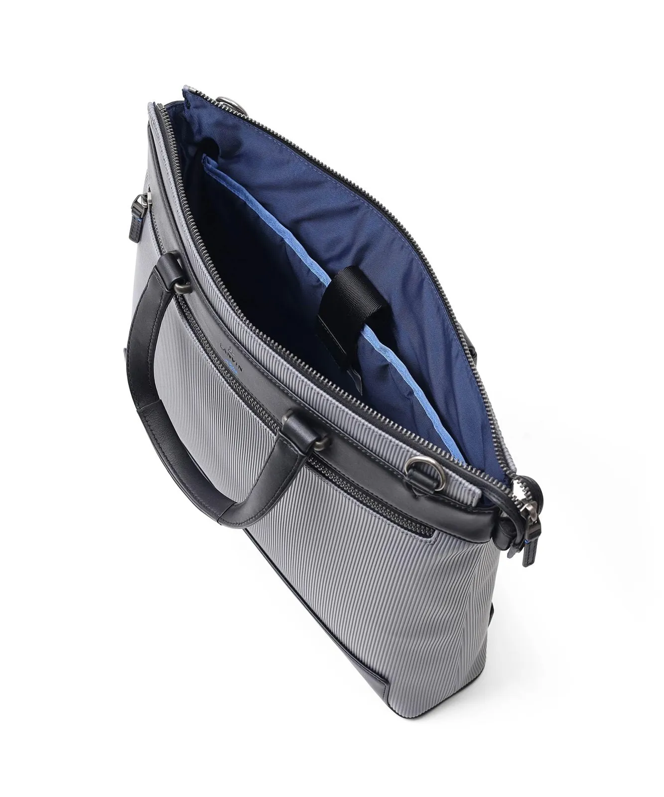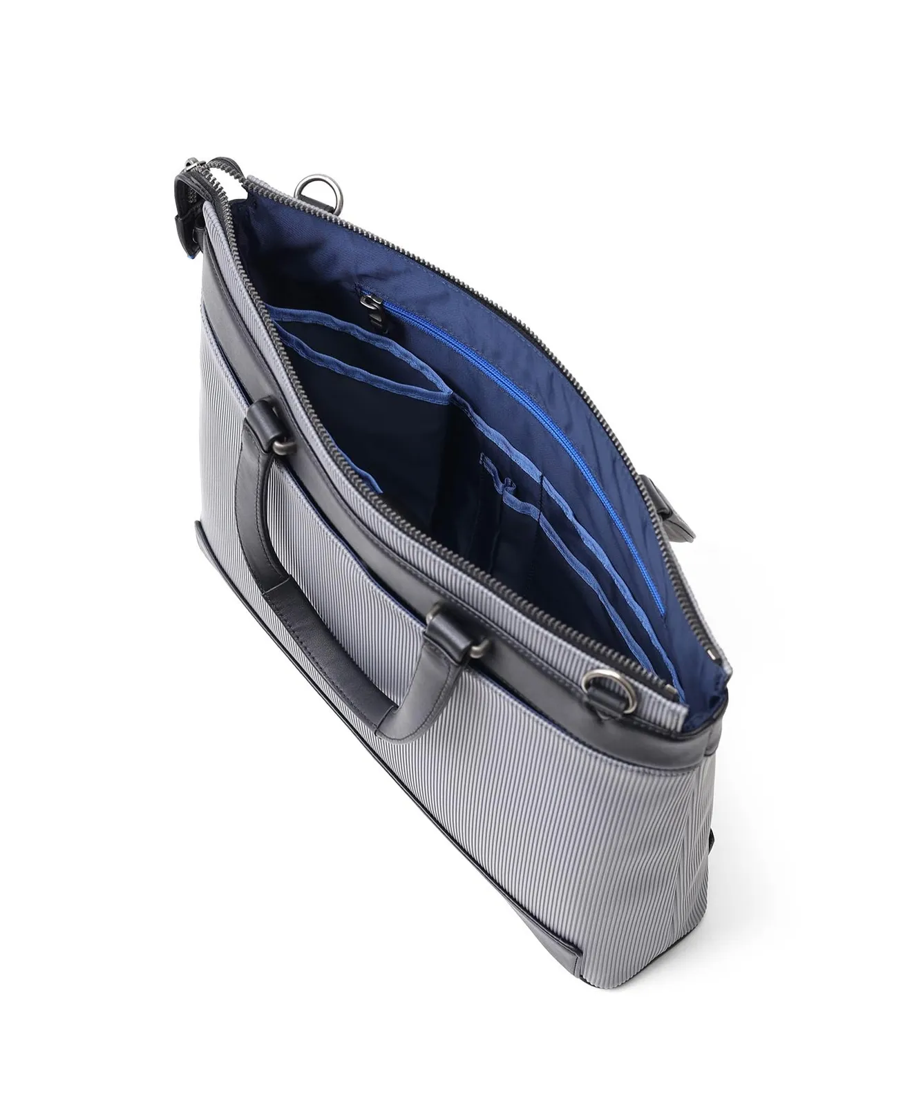 ラバー調の凹凸が特徴的なランバンオンブルーらしいPVC素材をストライプ柄として使用したビジネスカジュアルバッグシリーズ。