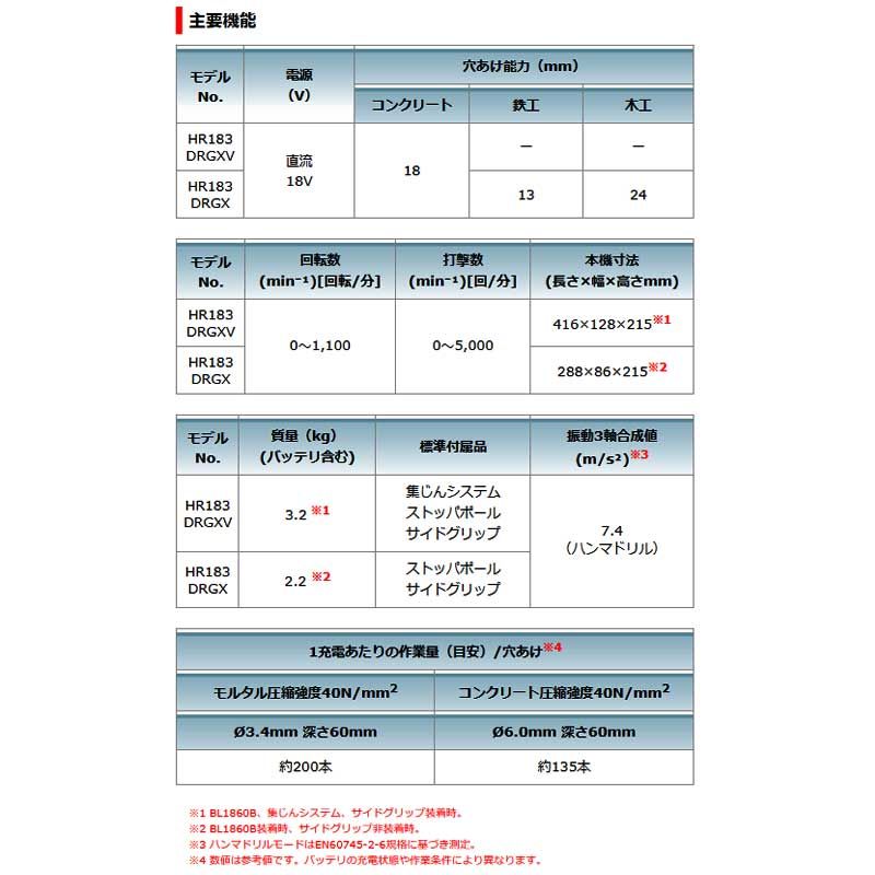 マキタ ハンマドリル 18mm 充電式ハンマドリル HR183DRGXV 青 ※集じんシステム付・ビット別売