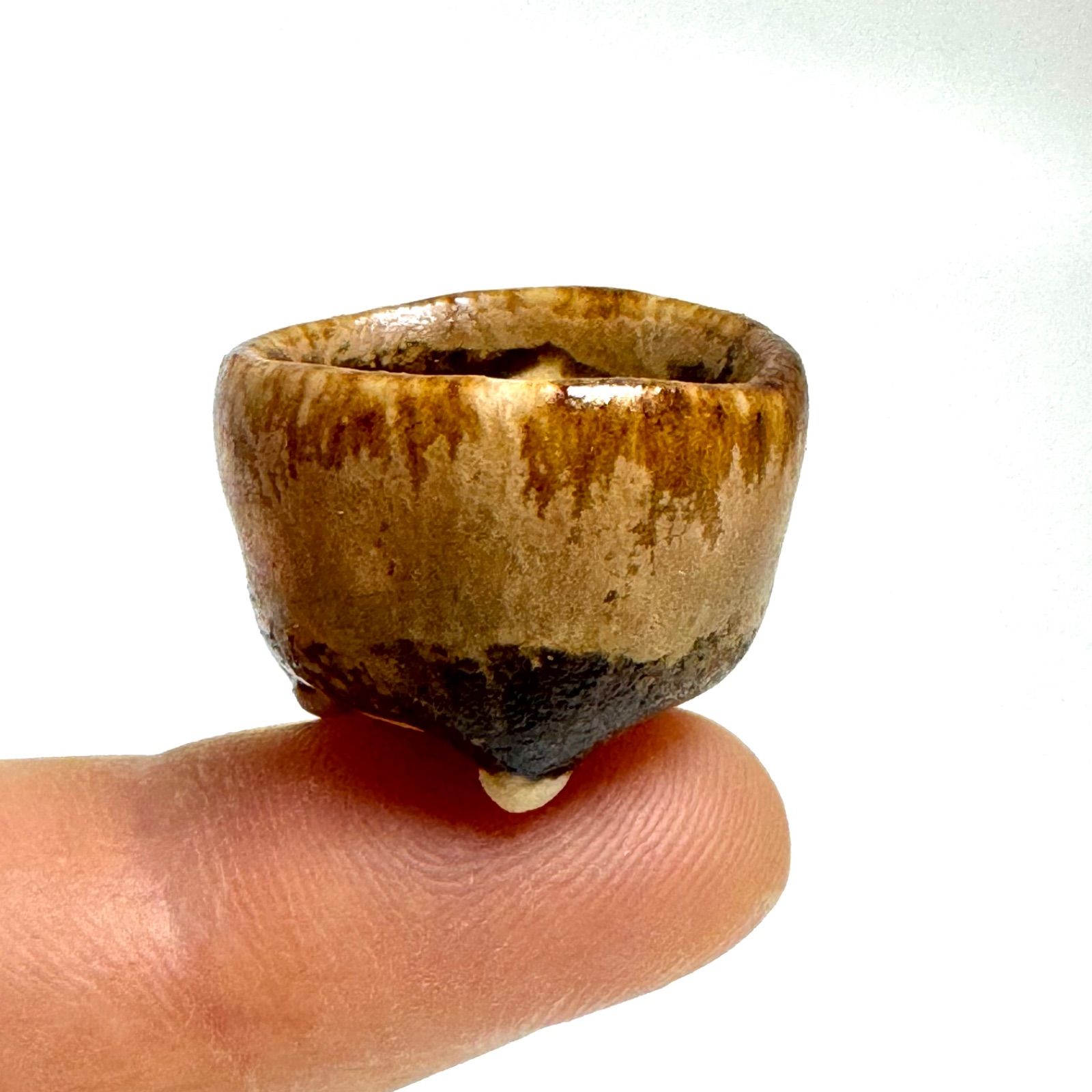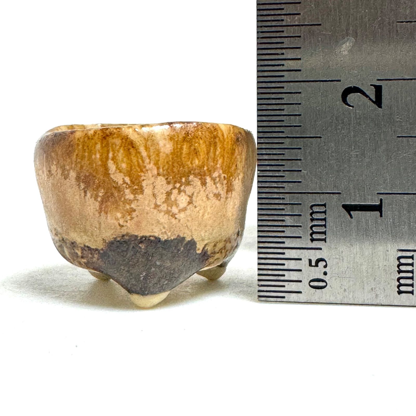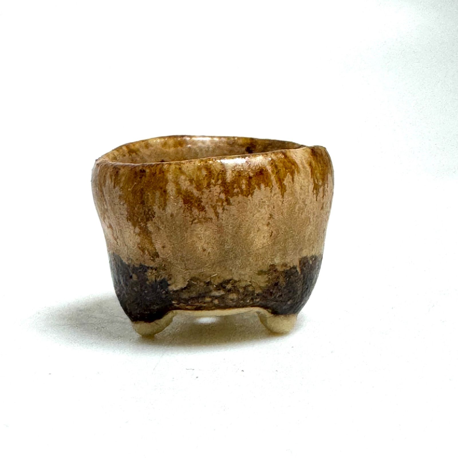 手作りならではの温かみあるフォルム。こんなに小さいサイズでも本格的な盆栽飾りにもお使いいただけるよう繊細な脚をつけています。