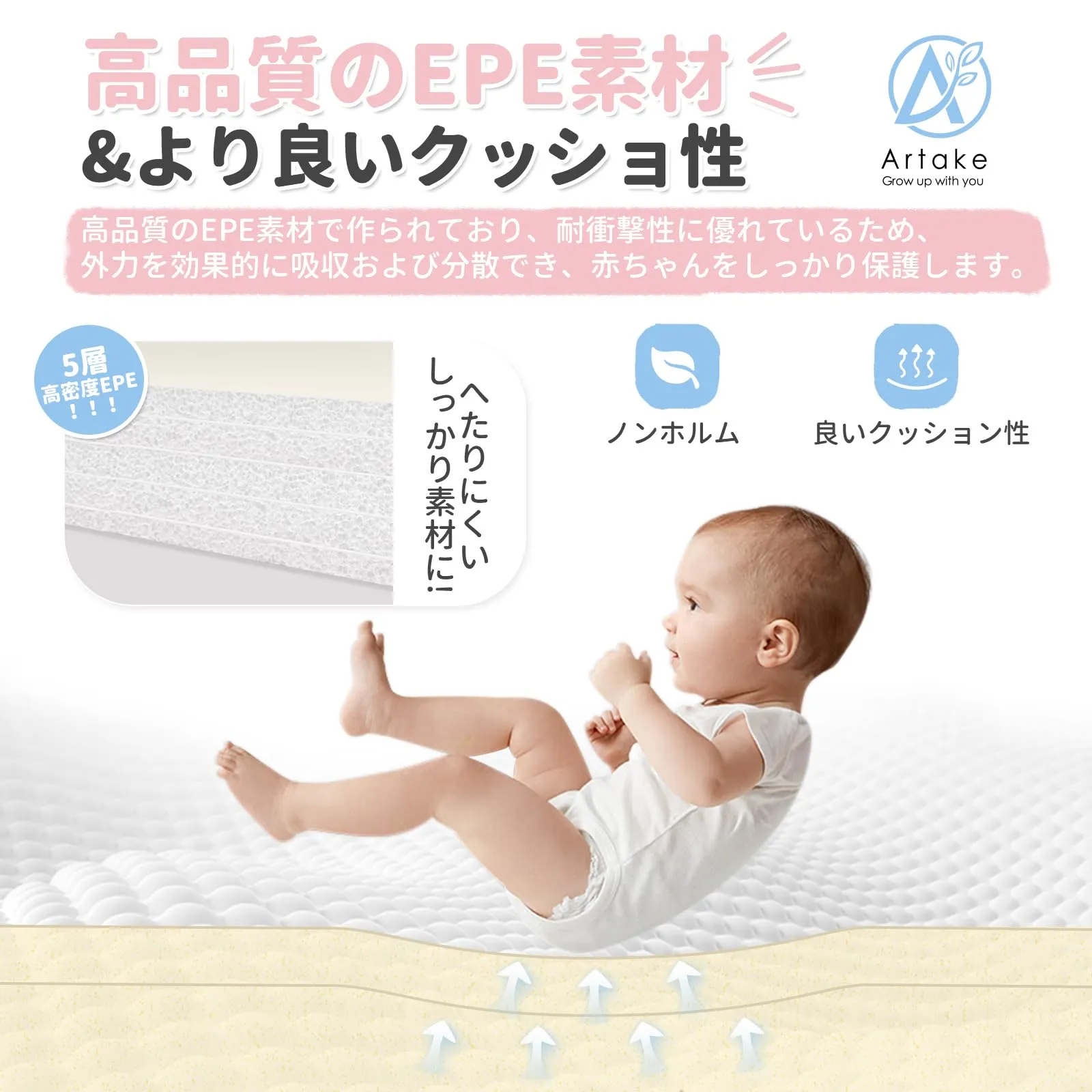 【4cmの厚みで衝撃吸収】厚さ4cmのプレイマットは衝撃吸収性に優れ、プレイマットをする赤ちゃんや小さな子どもにとっては、転倒時の保護にもなり、ぶつけたり打撲したりするリスクを減らすことができます。