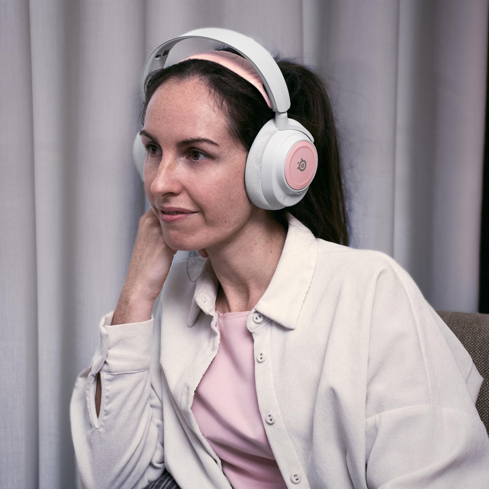 【目を惹くカラーリング】メタリックカラーのスピーカープレートとデュアルカラーのナイロン製ヘッドバンドを装着し、自分のArctis Novaヘッドセットがさらに目を惹くカラーリングに。