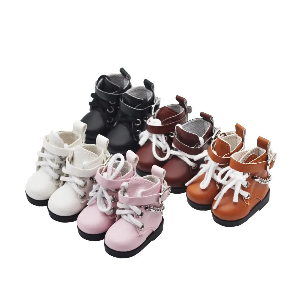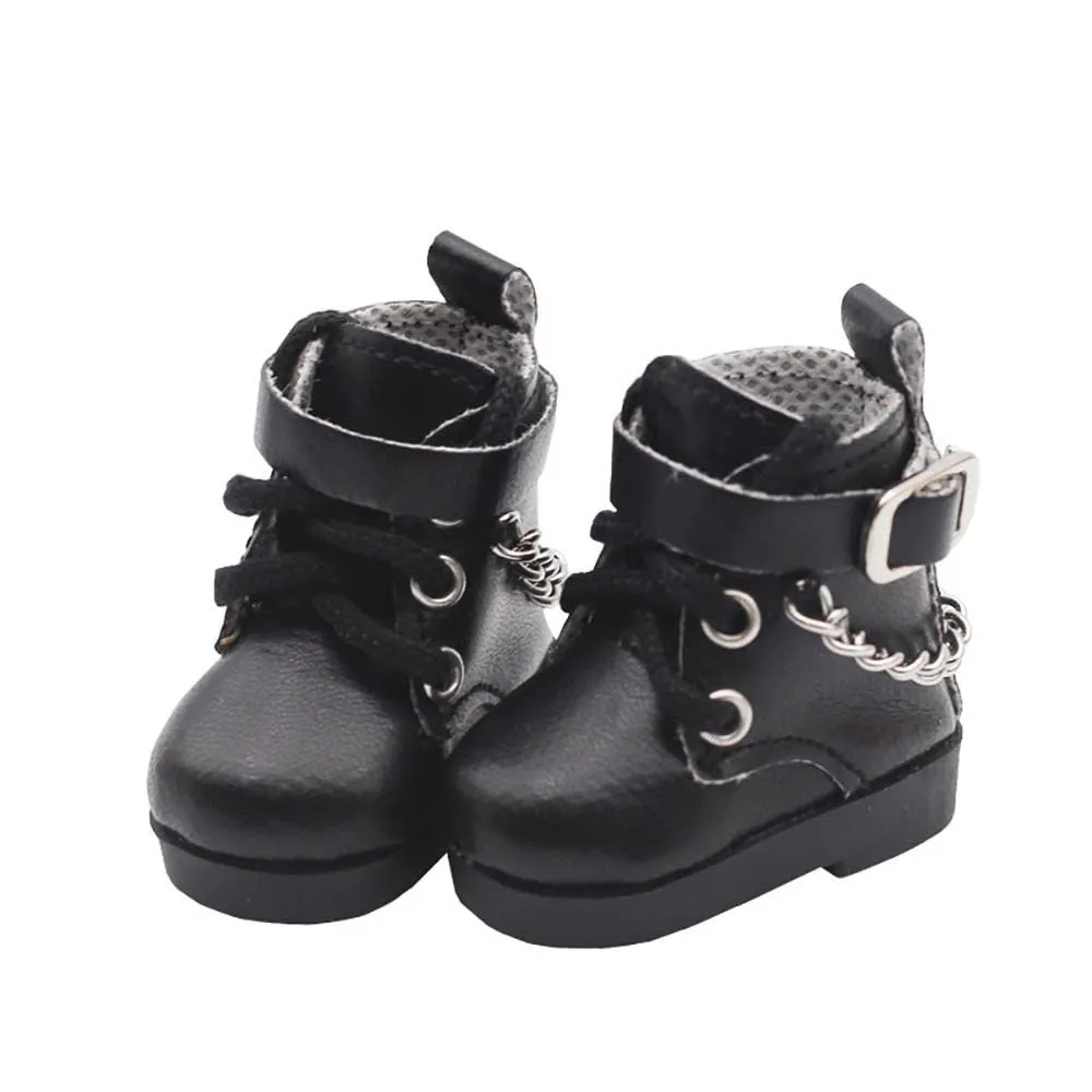 niannyyhouse 15cm ぬいぐるみ革靴 1/6bjd ドール チェーンブーツ 靴の長さ4.5cm 着せ替え 綿人形 アクセサリー (Black)