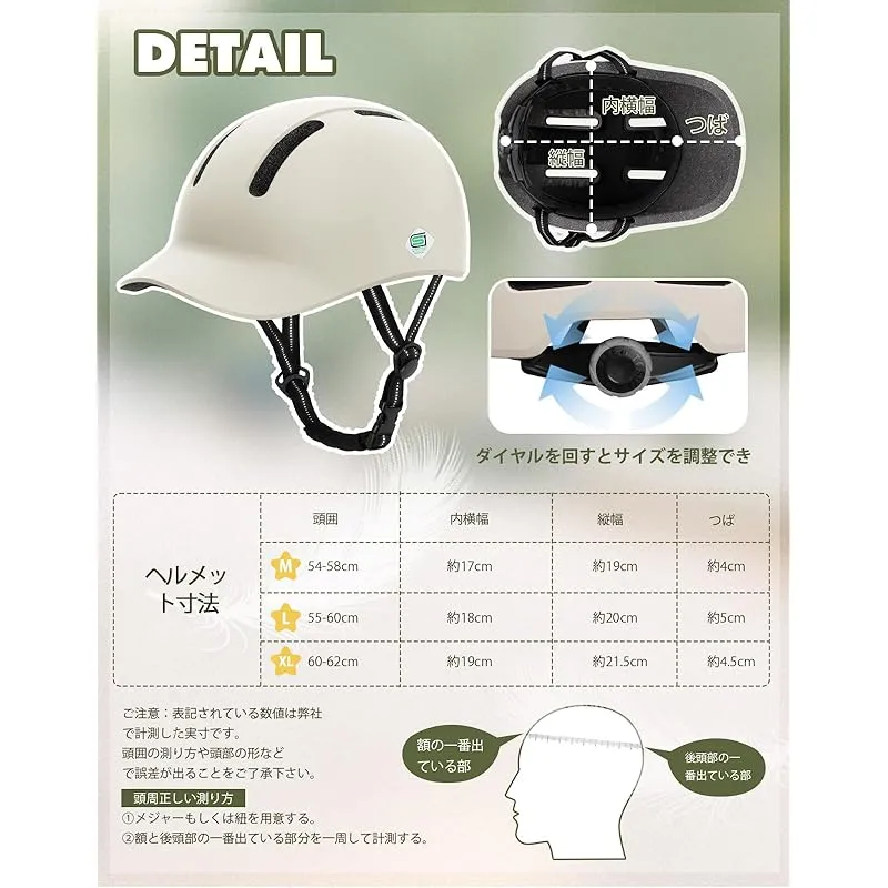 【M/L/XLサイズ】 CE/CPSC認証済 EN1078規格 高剛性&通気性&超軽量 御洒落 キャップ型 街乗り 男女兼用 通勤 通学用ヘルメット サイズ調節可能 乳白色 製造元:Issufel 商品番号:GH-38 商品内容:L(55-60)cm 色:乳白色