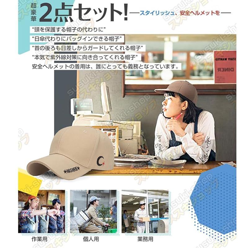 【軽量&紫外線対策】 帽子のデザイン性とヘルメットの性能を両立し、オシャレをしながら頭を守ります。約190gの軽量設計で疲れにくい。UVカットキャップ、つばの長いタイプで、日焼けや日差しから顔を守ります。紫外線は肌にダメージを与えるので、外出時には日よけ帽子が不可欠な単品、夏の強い紫外線に最適です。