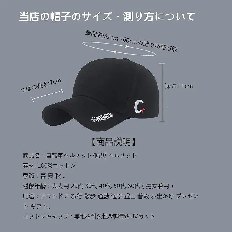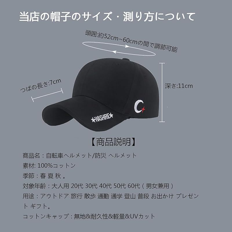 【2025年最新野球帽ヘルメット】素材:キャップは優れた100%コットンで作られ。通気性が抜群です。内部の保護構造:ABS樹脂+EVAクッション。ヘルメット内部にはクッションがあり、頭部を保護し外部からの衝撃を軽減します。これは、実用性、おしゃれを兼ね備えた取り外し可能な簡易帽子型ヘルメットです。従来のヘルメットとは異なり、日常の使用により適しています。頭囲:調整ベルト付きですので52~60とサイズ調整が可能。