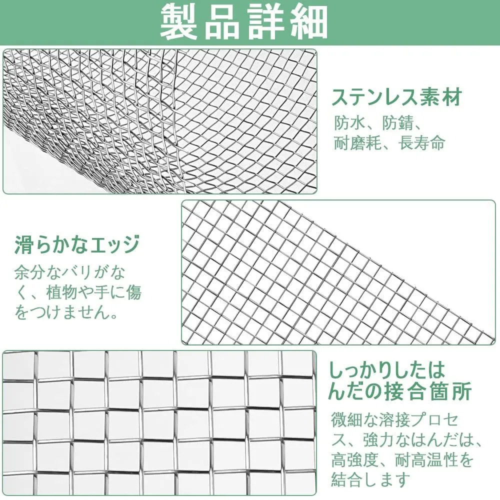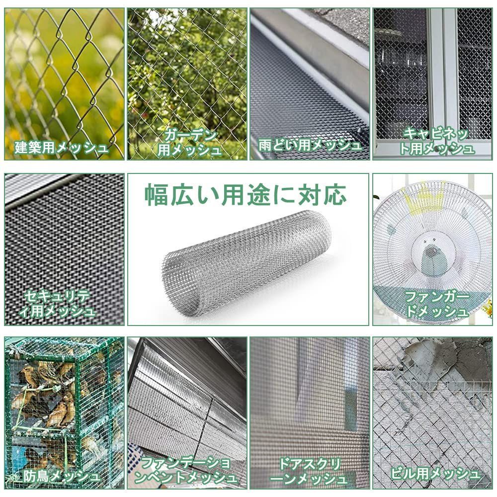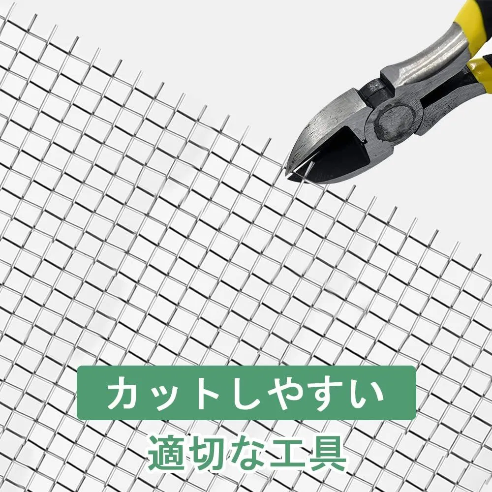 【使いやすさ】:金網は柔軟で耐久性があり、ニーズに応じて様々な形やサイズにカットでき、様々な使用シーンに適応します。屋内および屋外での使用に適しています。取り扱う際は、エッジに注意し、手を保護するために手袋を着用してください。