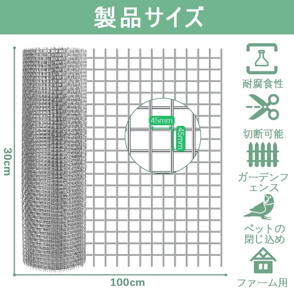 【製品サイズ 】:パッケージには1巻5メッシュ304ステンレスメッシュが含まれます。開口部:4.5mm x 4.5mm、幅:30cm、長さ:1m、網戸線径0.7mm。注意: 本製品のエッジは未処理ですので、ご使用の際は手袋を着用することを強くお勧めします。