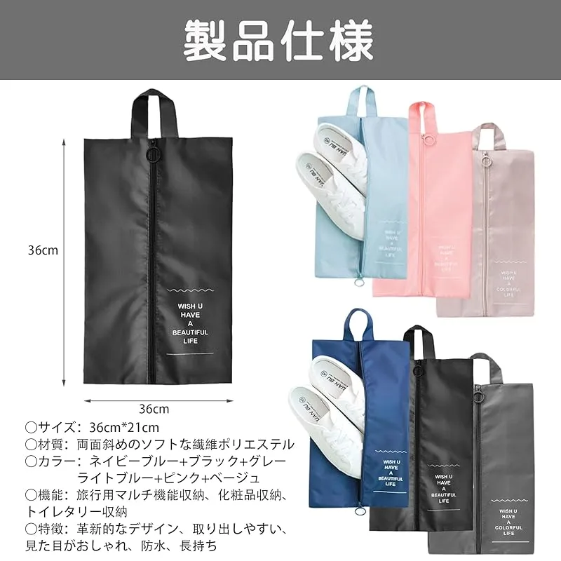 【製品仕様】靴袋サイズは約36cm*21cm、重量約40gと軽量。3個入り(ネイビーブルー+ブラック+グレー)。39サイズ以下の靴に対応していますので、購入前にサイズをご確認ください。