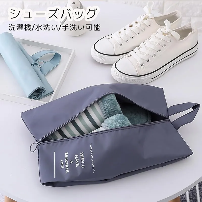 【使い勝手】スーツケースの清潔に保ち、靴を収納し、靴の匂いを中に閉じ込め、衣類をよごさないようにこのシューズバッグを使ってください。また水洗い可能なので、常に清潔な状態で使用可能です。使わない時は、くるくる巻くだけでいつでもバッグに入れておけるサイズ。