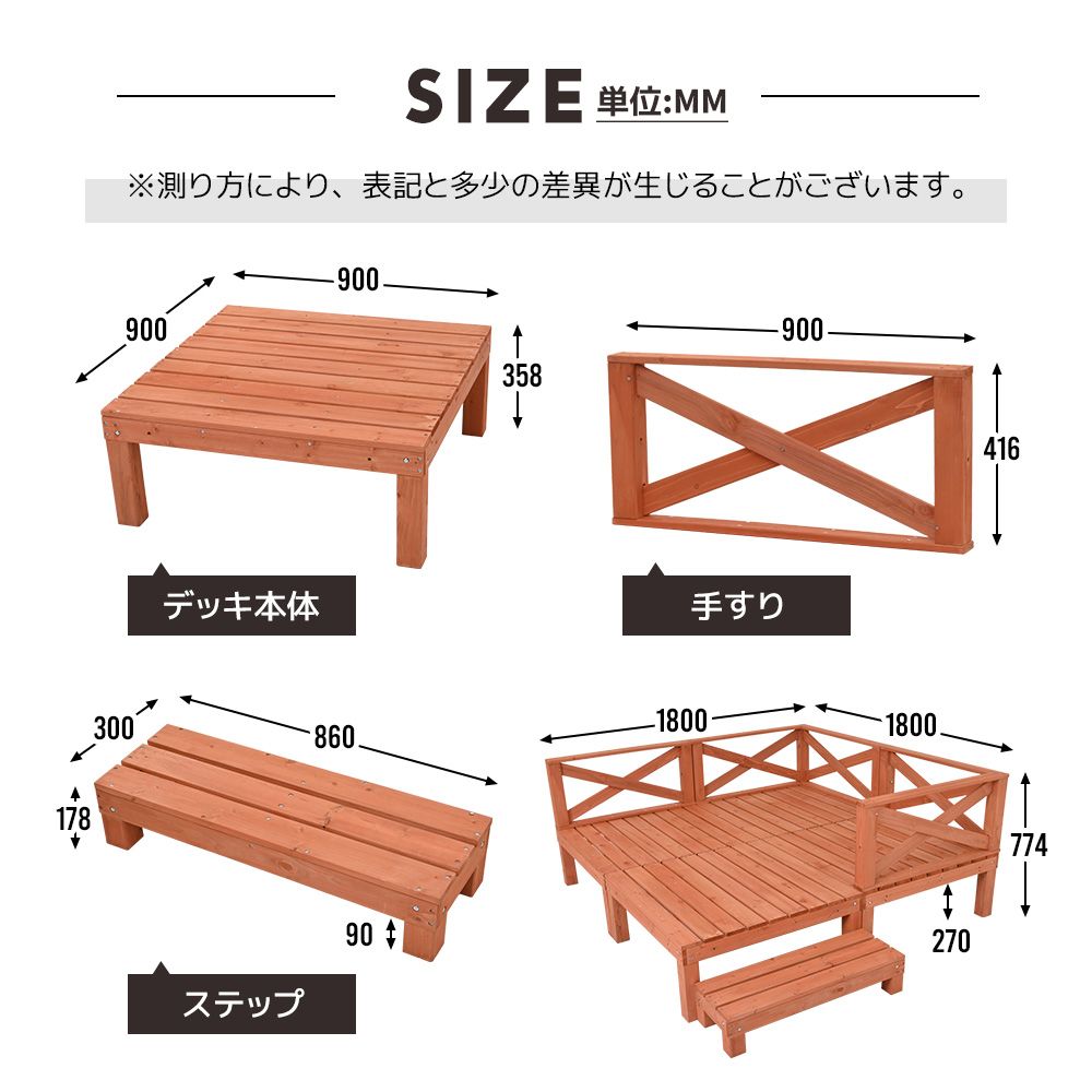 天然木のぬくもりを楽しめる、1坪サイズのウッドデッキ8点セットです。