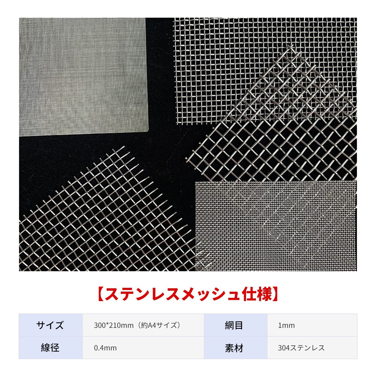 【ステンレスメッシュ仕様】 サイズ:300*210mm(約A4サイズ)、線径:0.4mm、網目:1mm 素材:304ステンレス