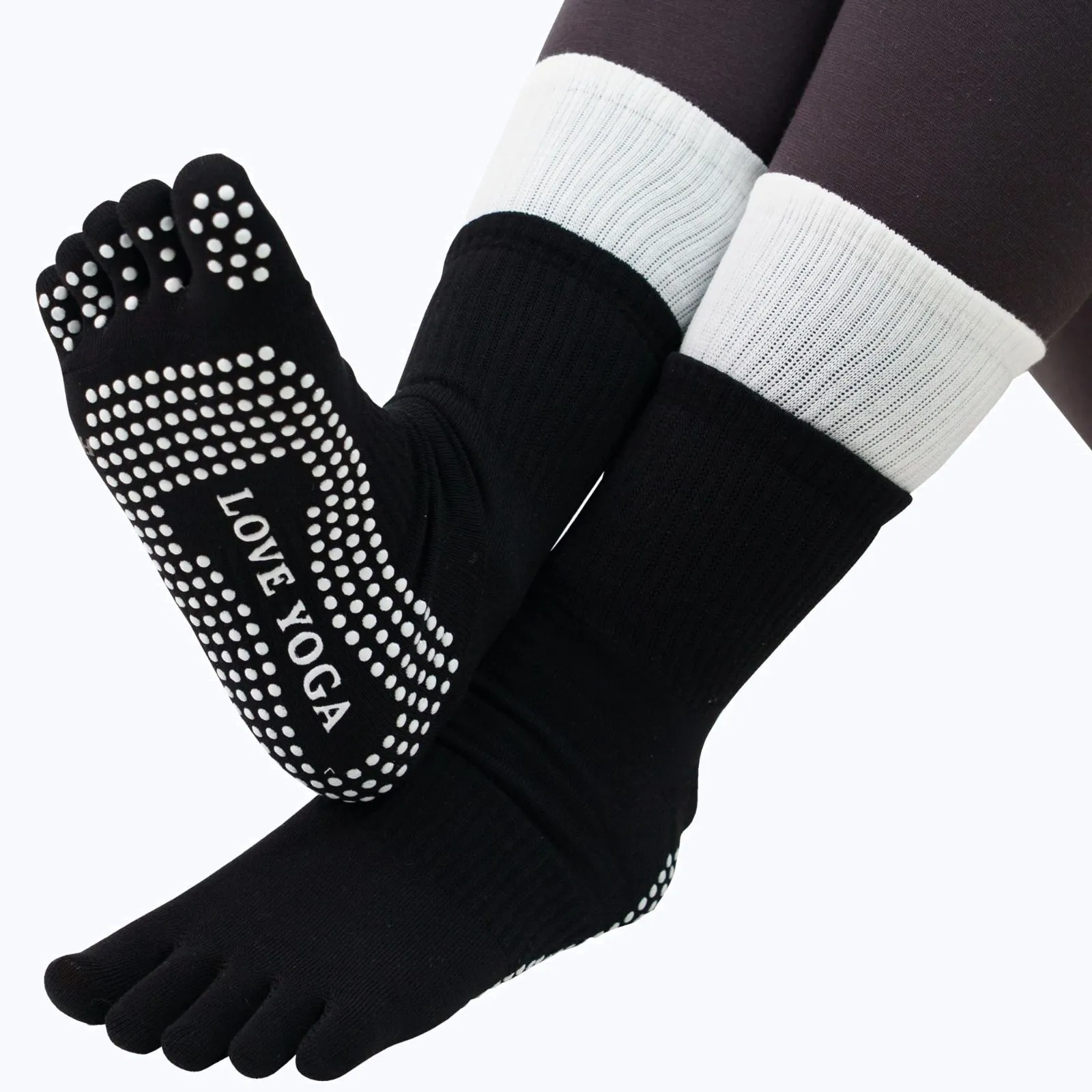 【インストラクター推薦】 ヨガソックス レディース 5本指 ソックスすべりどめ ピラティス フィットネス 靴下 ダブルカーフ 重ね履き風 靴下 おしゃれ