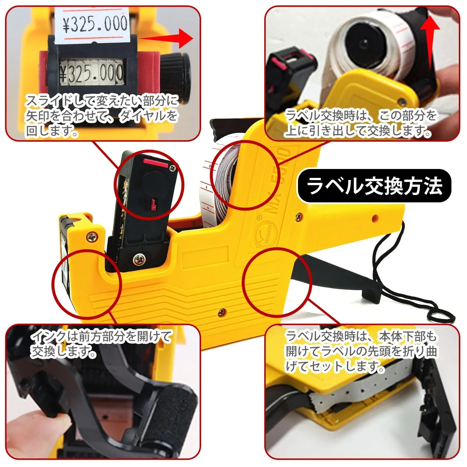 ハンカチ本体×1枚、替えラベル10巻(1巻あたり400枚)、替えインク1個