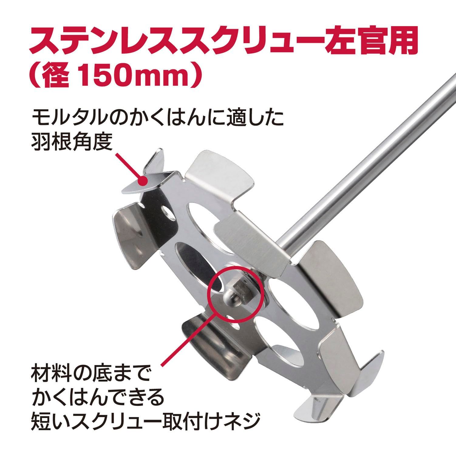 ・モルタルのかくはんに適したステンレススクリュー(径150mm)