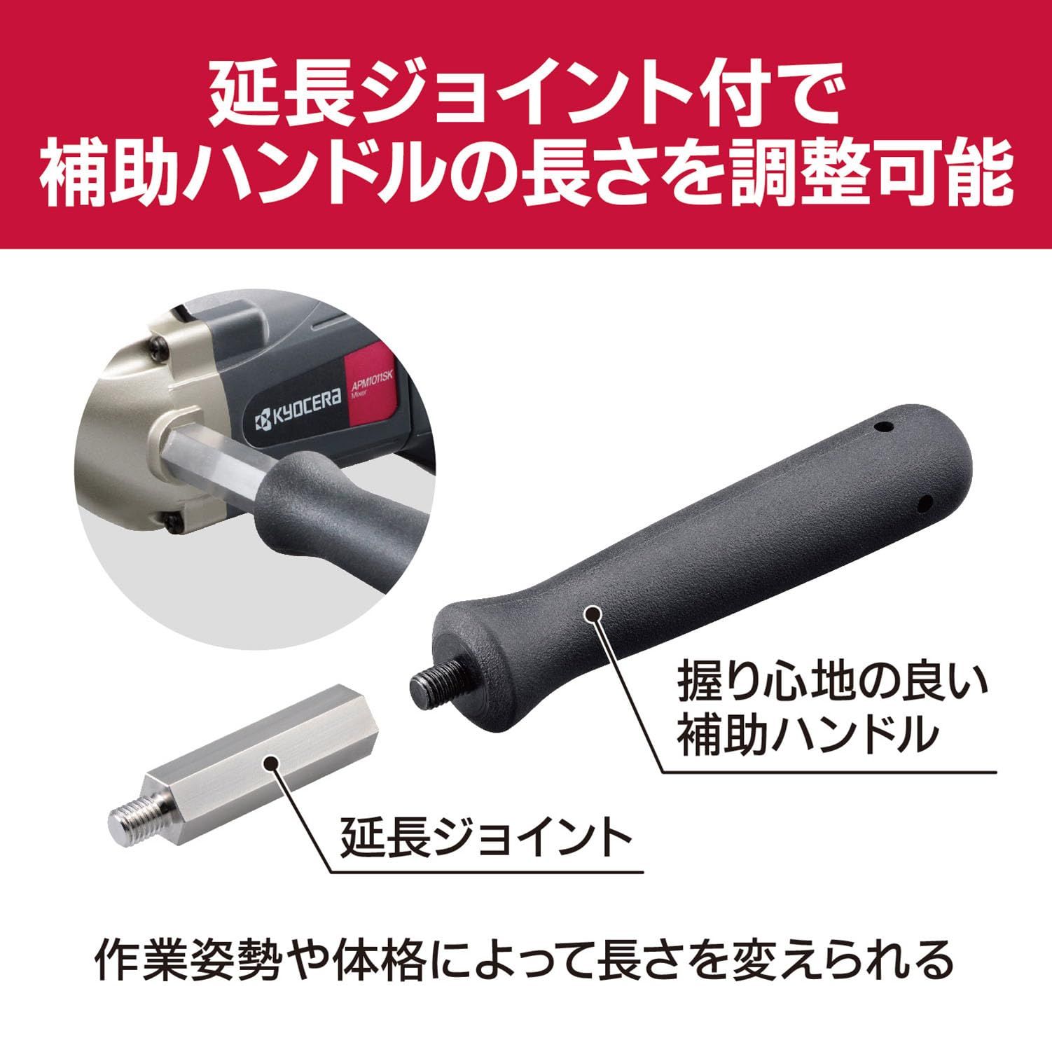 ・補助ハンドルを60mm延長できるジョイント付