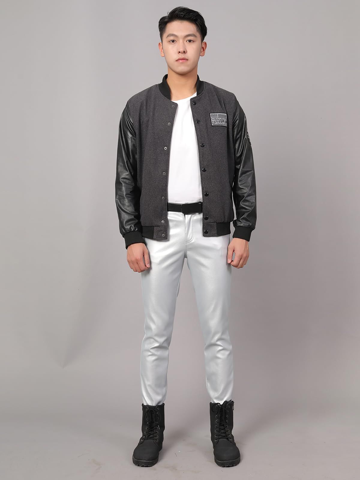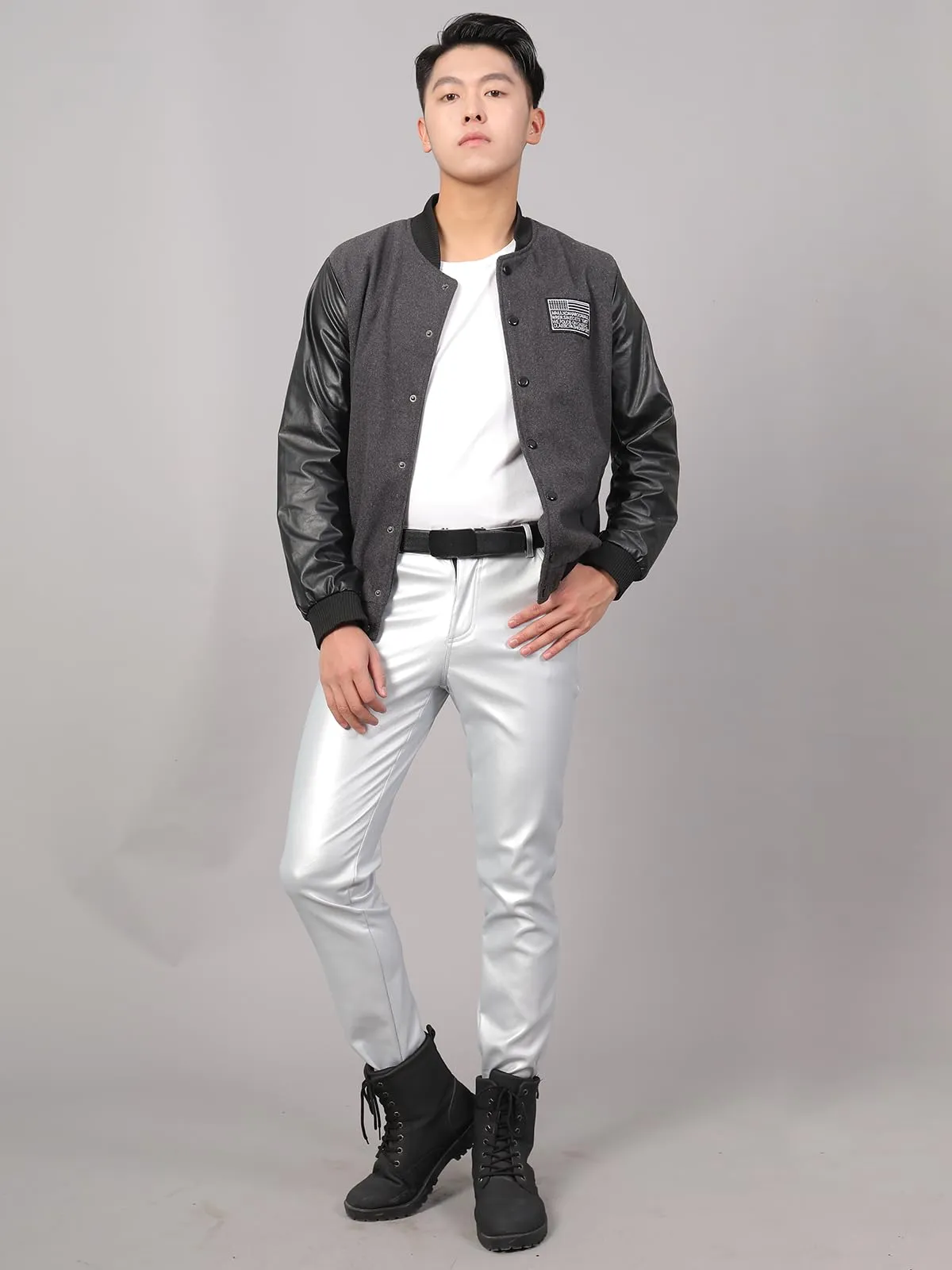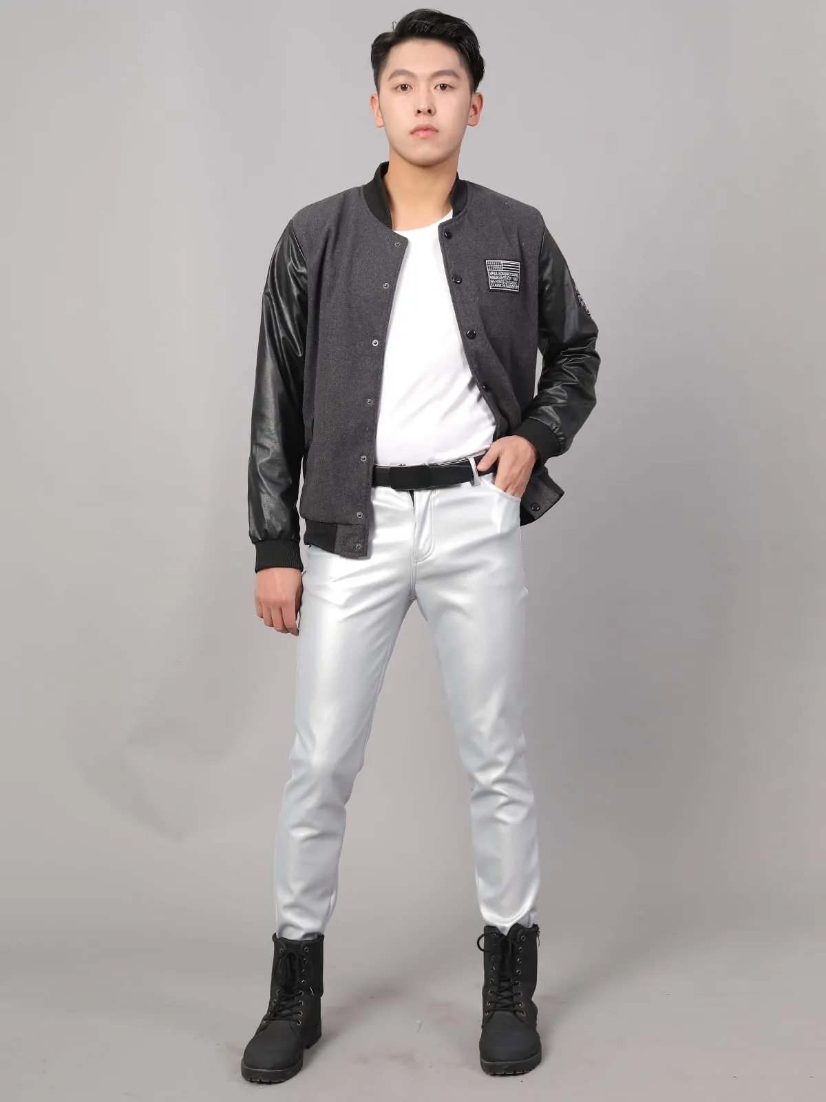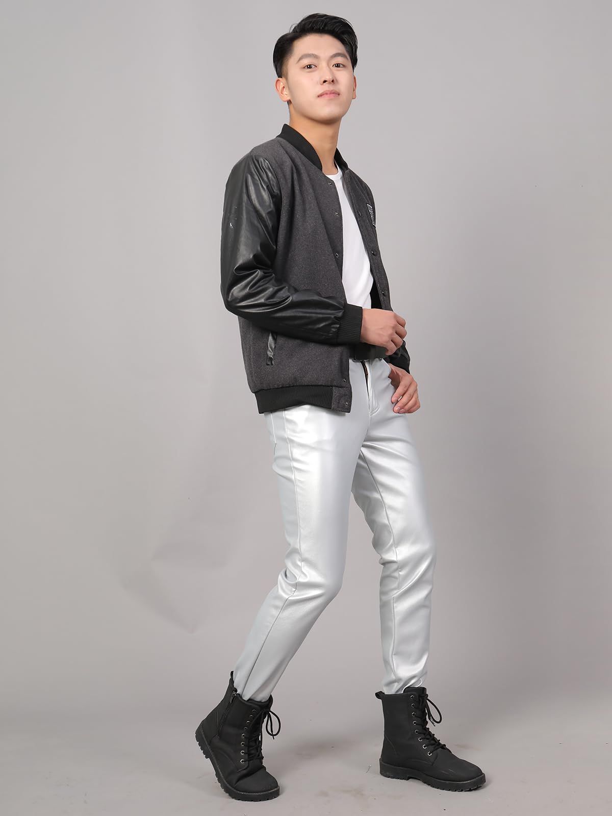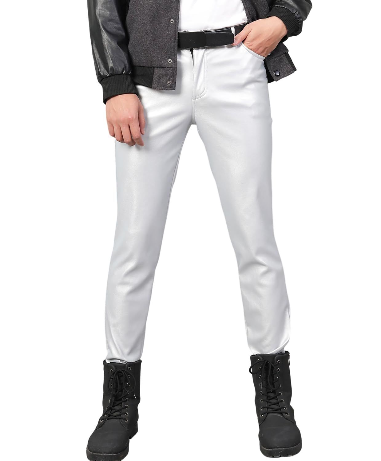 新品 [East Rain] シルバー 革パンツ ペンシルズボン PU オートバイパンツ ロングパンツ puレザー 無地 春 秋 メンズ SEW544