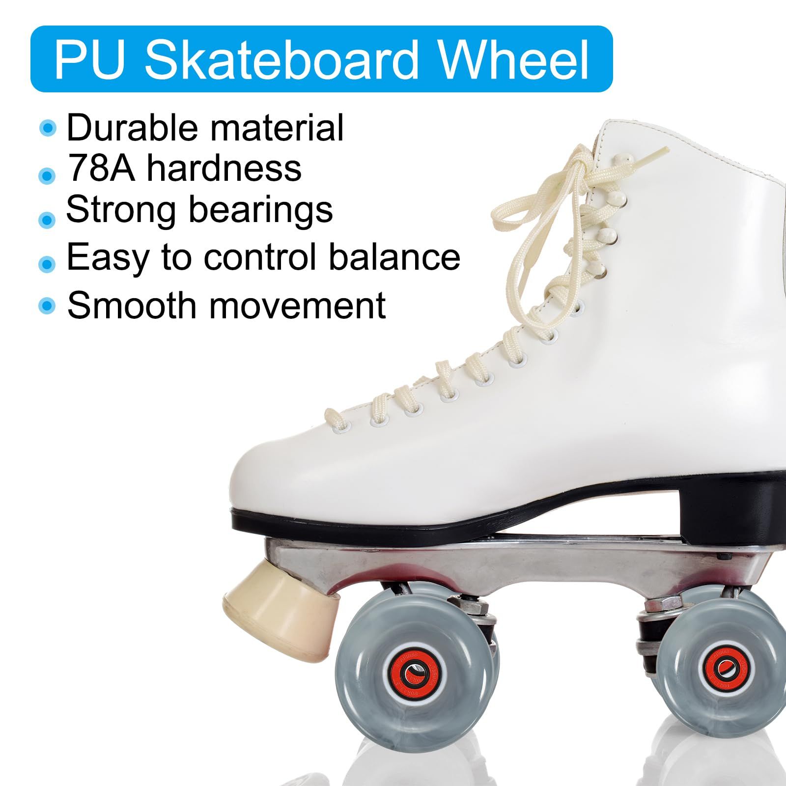 78A硬度 - 78A硬度のホイールはグリ ップ力に優れ、粗い表面でも滑るのに十分な硬さですが、ローラーホイールのPU素材は優れた衝撃吸収性を備えているため、屋外でのスケートや粗い表面でのスケートでも硬くて快適です。