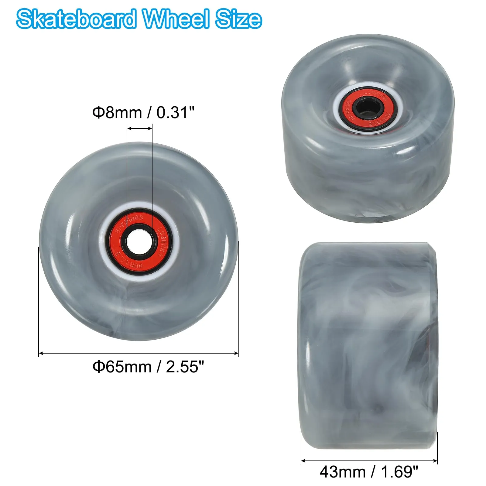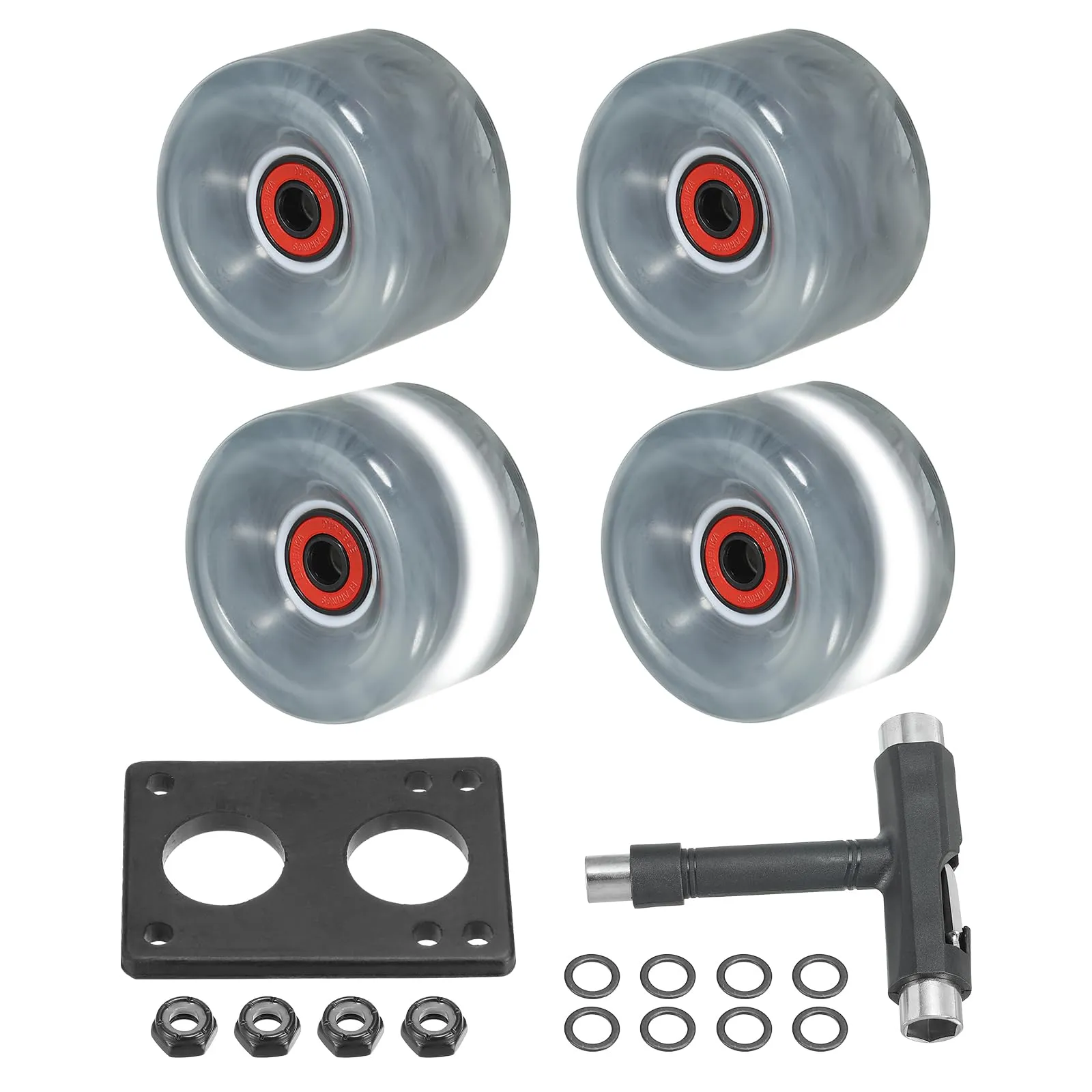 新品 PATIKIL ローラースケートホイールセット 4個 65 mm 78A ライトアップスケートボード クルーザーホイールセット ベアリングトラ ックツールキット付き 屋外クワッドスケート用 グレー