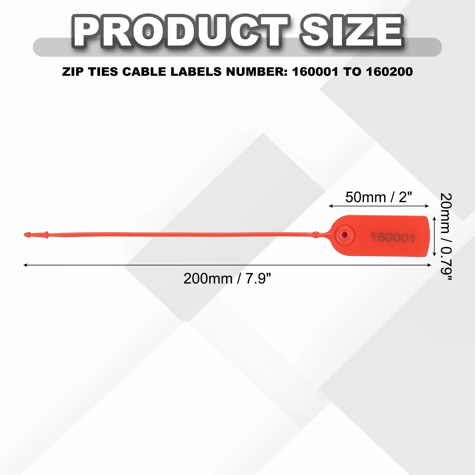 新品 PATIKIL 200個 プラスチック封印 プラスチックセキュリティシール使い捨て番号付きジップタイ安全タグケーブルラベル自己ロック在庫ラベリング衣類看板しゅっか 赤