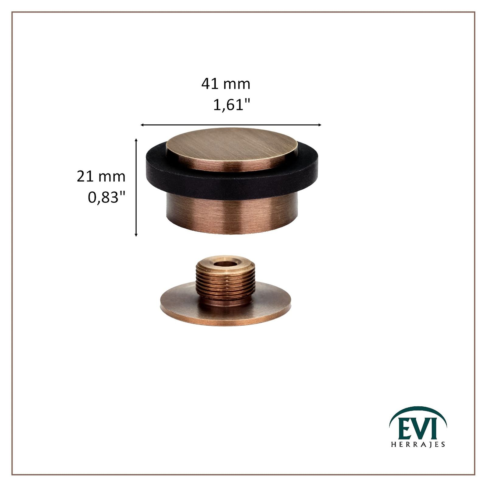 新品 接着剤ドアストッパー| 45x20mm |ねじ山ベース|ブラックラバー|真ちゅう|熟成レザー仕上げ|ネジ+固定プラグが含まれています| Mod。I-203/35X19-DUAL | EVIハードウェア