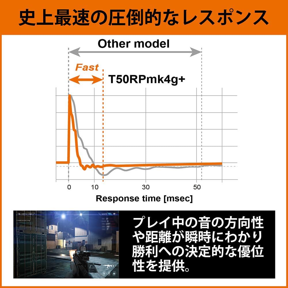 史上最速レスポンスが優れた定位感と分離感を実現:50年に渡り改良を続け、第4世代へと進化したRPテクノロジーの全面駆動型平面振動板ドライバーを搭載。新設計のプリンテッドコイルのパ ターンやマグネットの増量などにより、重低音域から高音域まで正確かつ高精細に再生可能とし、微細な足音を聞き分け素早く正確に位置を捉え、環境音やBGMに混じるターゲットをピンポイントでクリアに聞き分けられるなど、圧倒的レスポンスで優れた定位感と分離感を実現します。