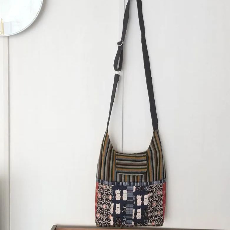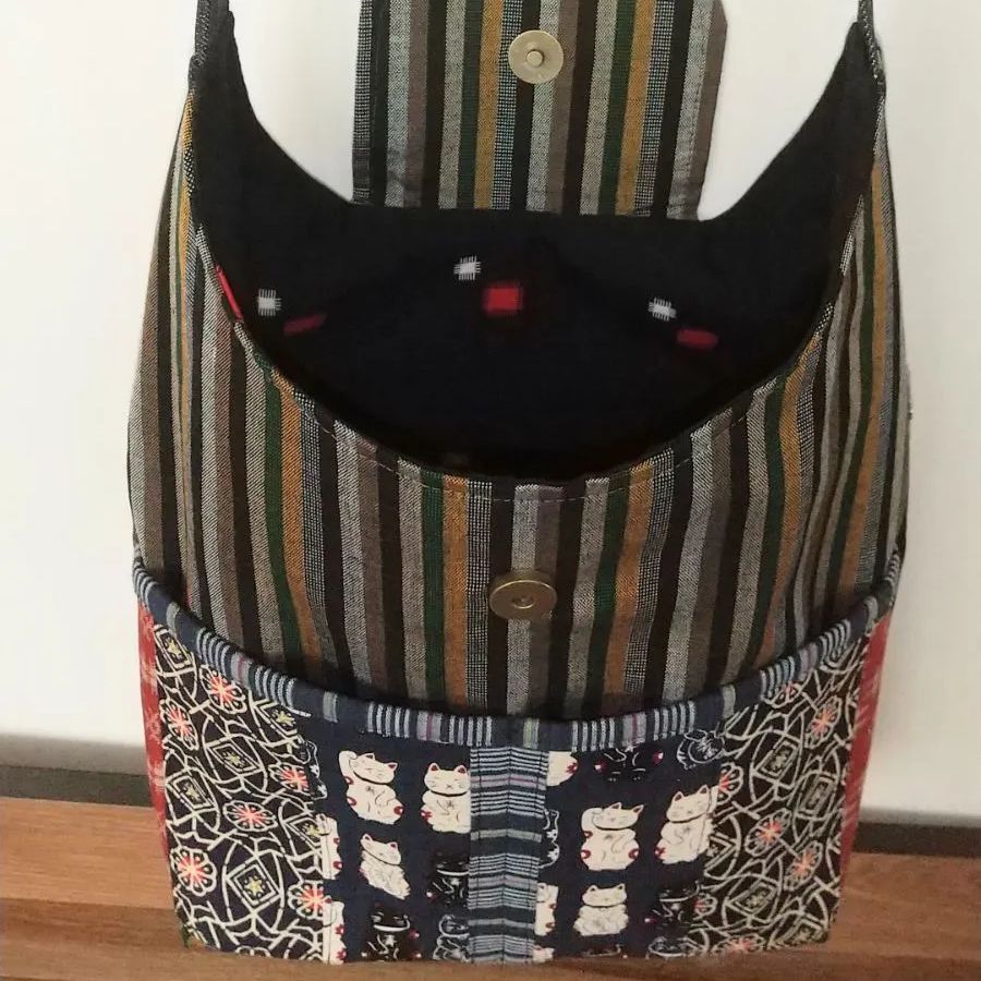 着物地 猫柄ショルダーバッグ ハンドメイド