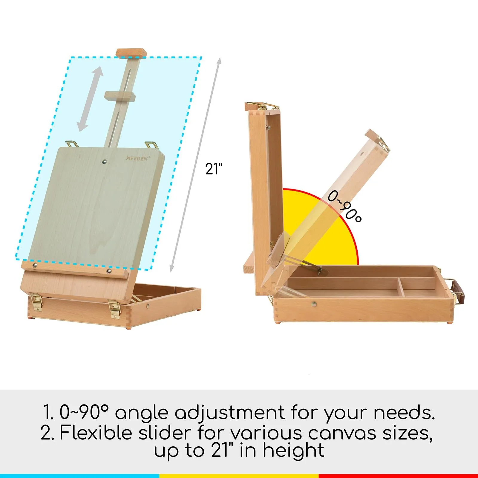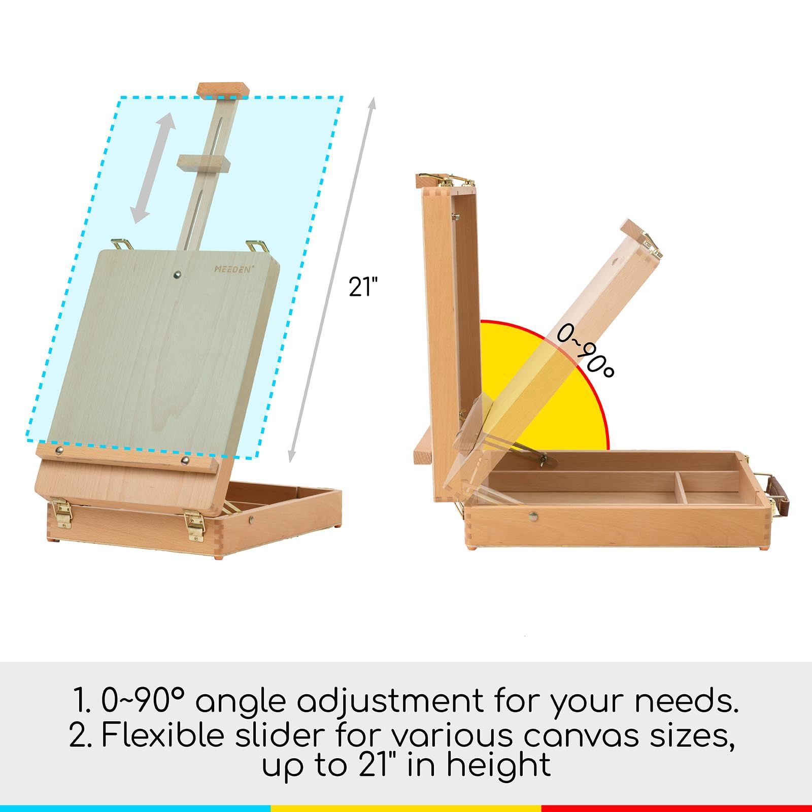 MEEDENは常に試す価値のあるアート素材を提供しています - この汎用性の高い独立した調節可能なスケッチボックスイーゼルは、次の芸術的な冒険に持っていくのに最適なパートナーです。