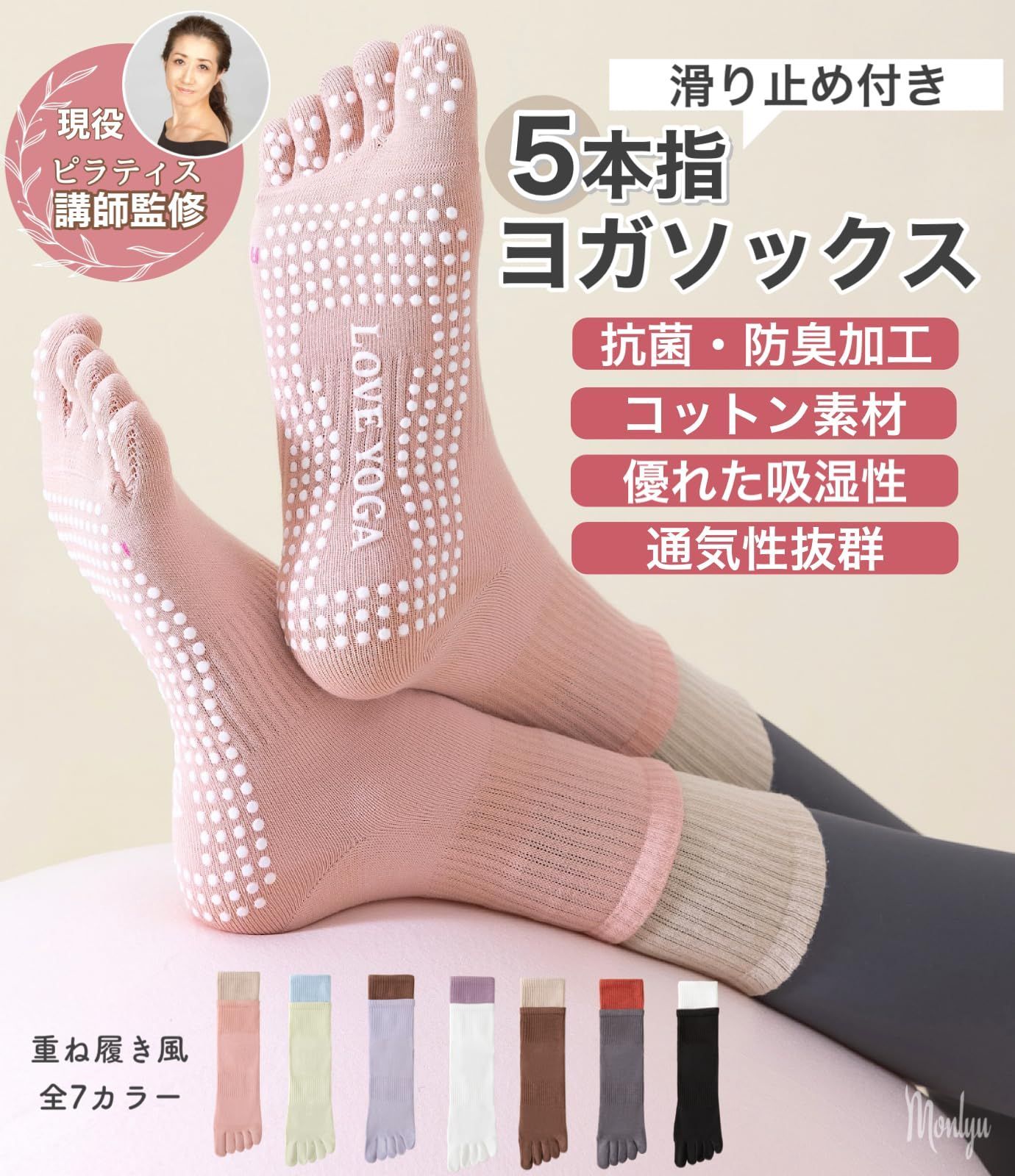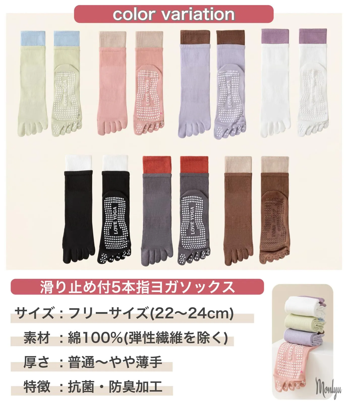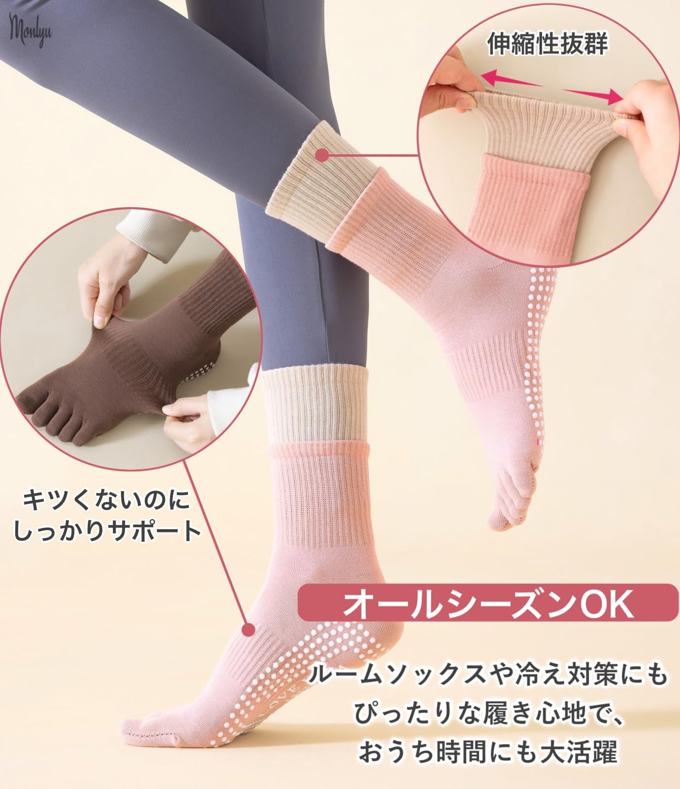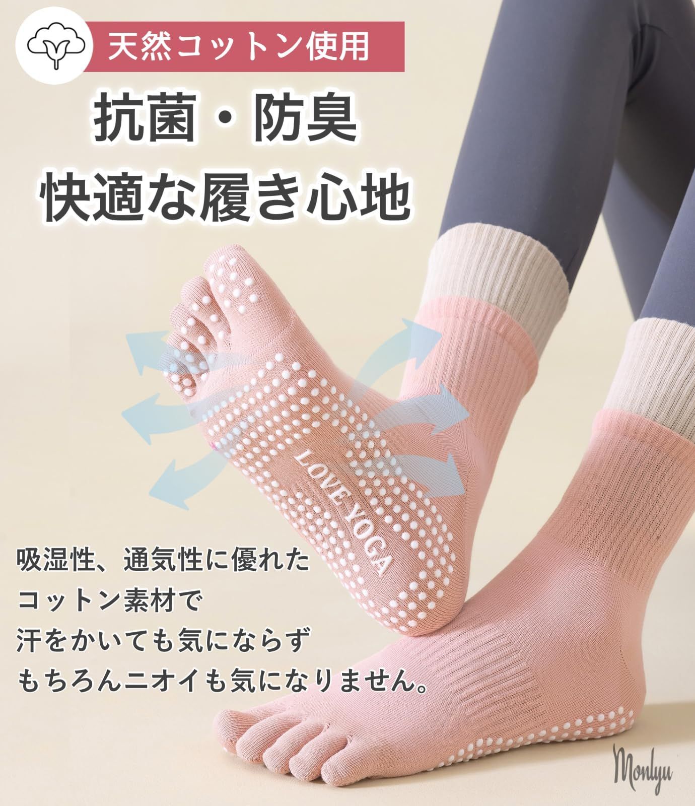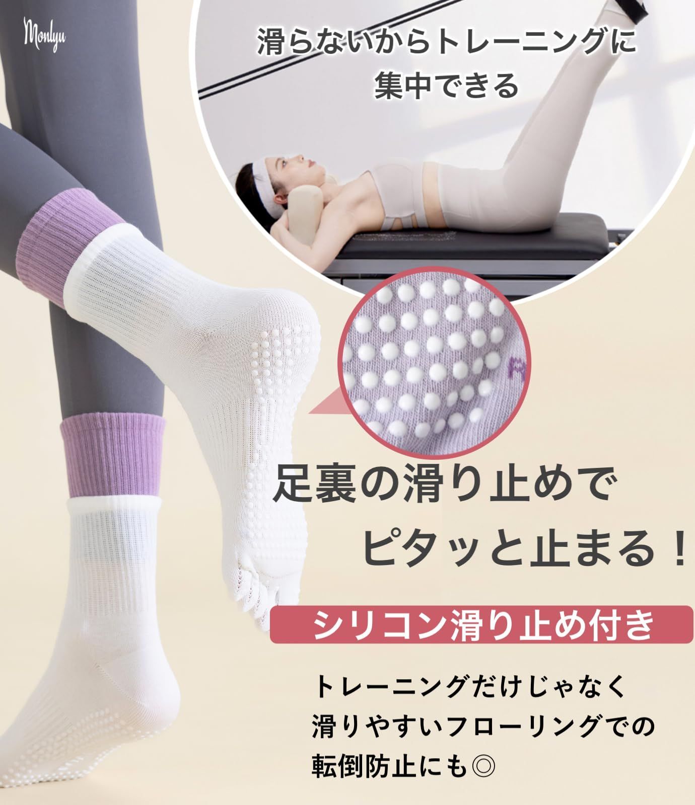 [Monlyu] ヨガソックス 5本指 滑り止め レディース ピラティスソックス ヨガ 靴下 抗菌防臭 ロング ピラティス スポーツ トレーニング グリップ ソックス すべりどめ ウェア 冷房対策 防寒対策 くつした くつ下 吸湿性 通気性 速乾
