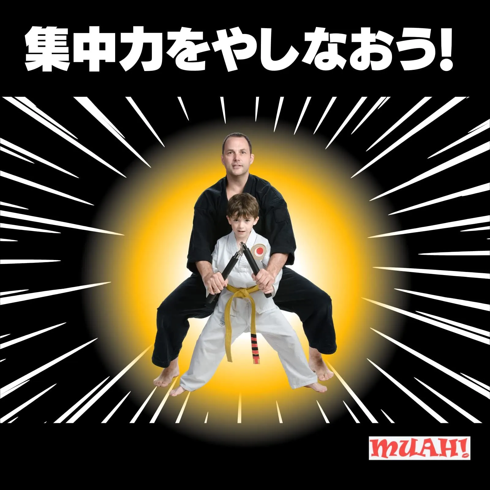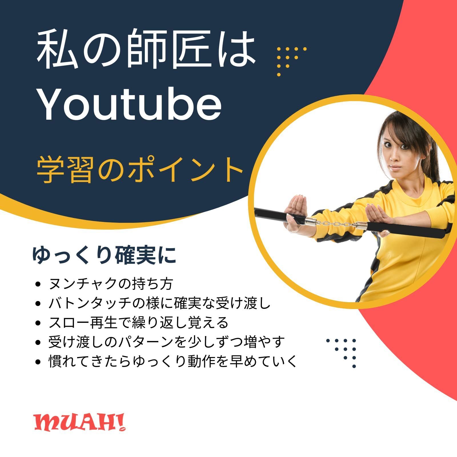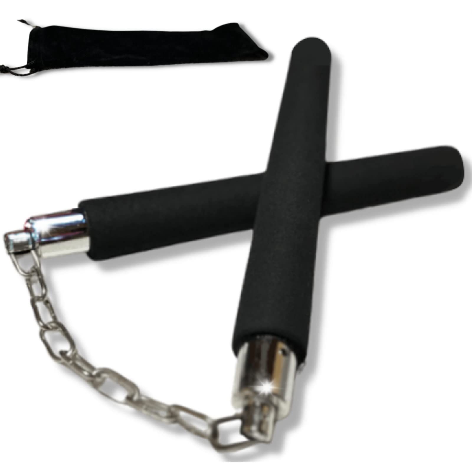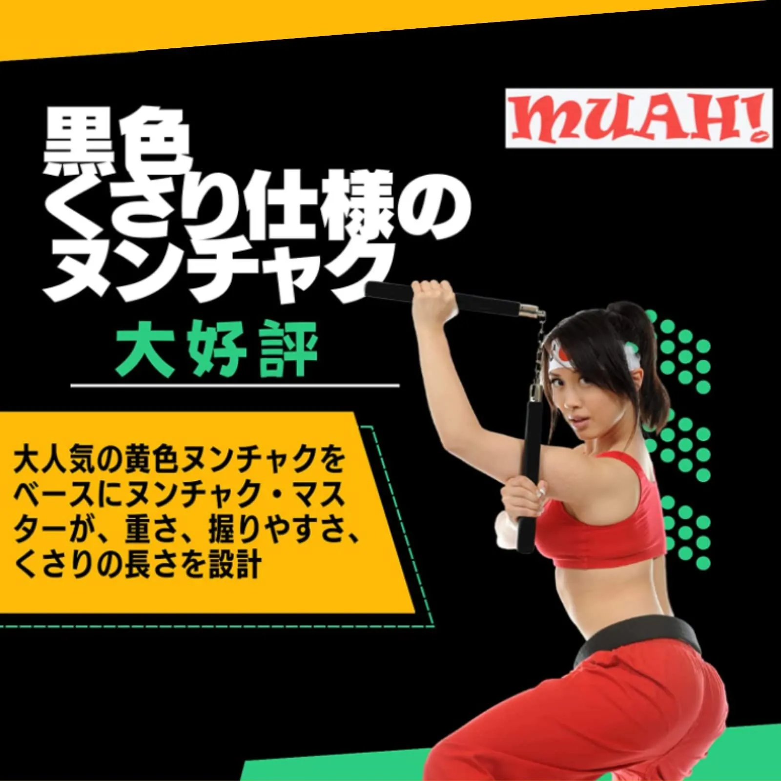 MUAH! ヌンチャク ヌントレ ダイエット 安全 軽い ウレタン 製 スポンジ 適度な 重さ 重量 初心者 練習 用 舞台 道具 黒色 黄色 ブラック イエロー 痛くない