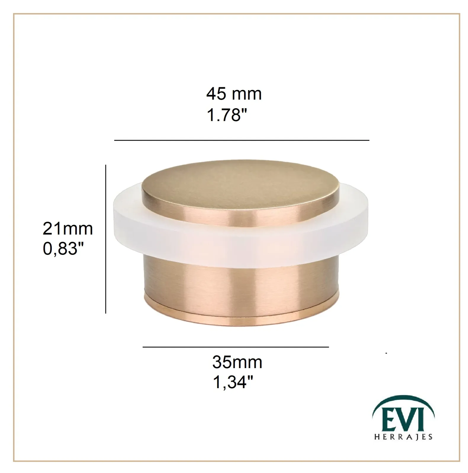 新品 接着剤ドアストッパー| 45x20mm |ねじ山ベース|ホワイトラバー|真ちゅう|マット仕上げ|ネジ+固定プラグが含まれています| Mod。I-203/35X19-B-DUAL | EVIハードウェア