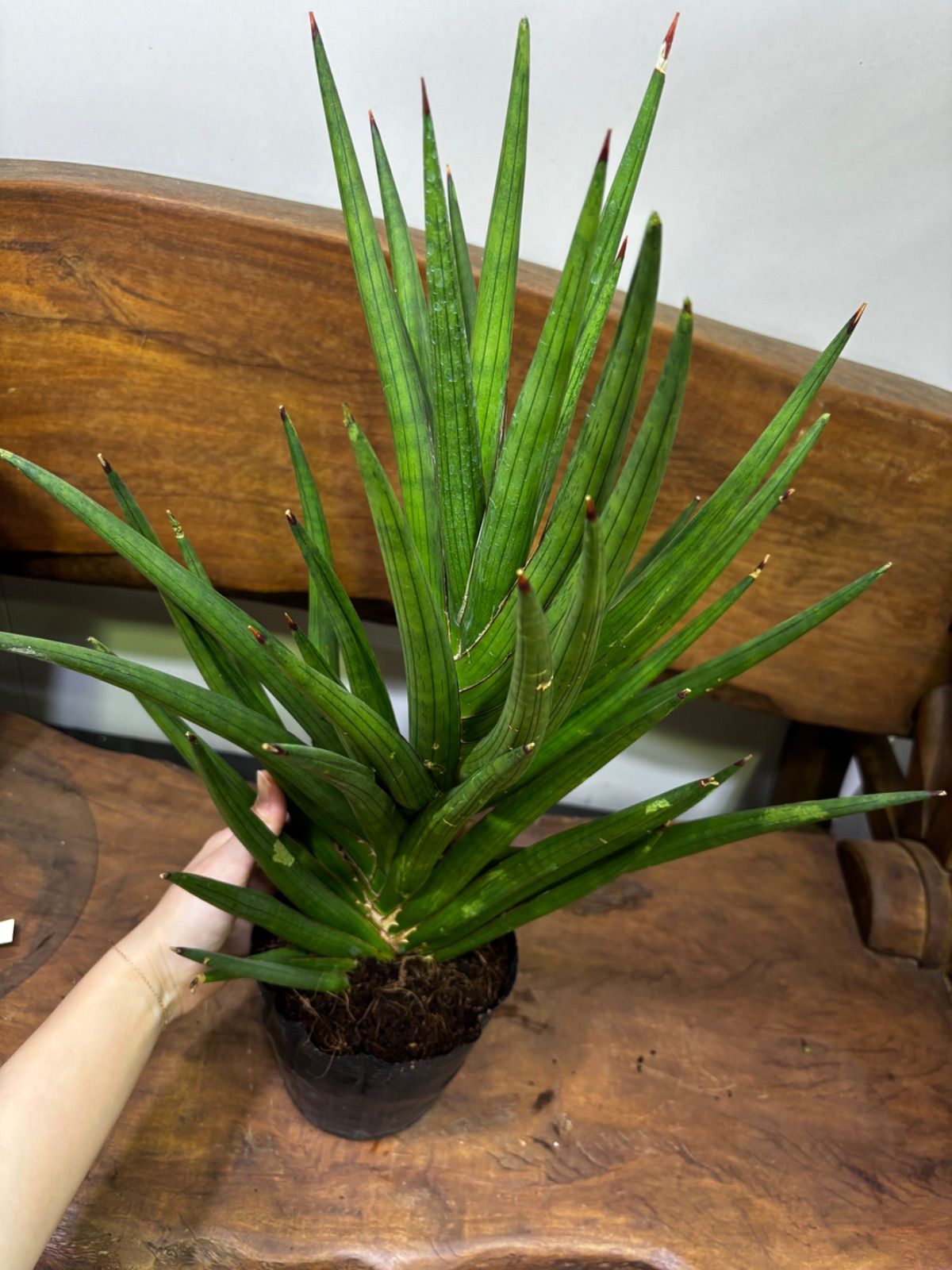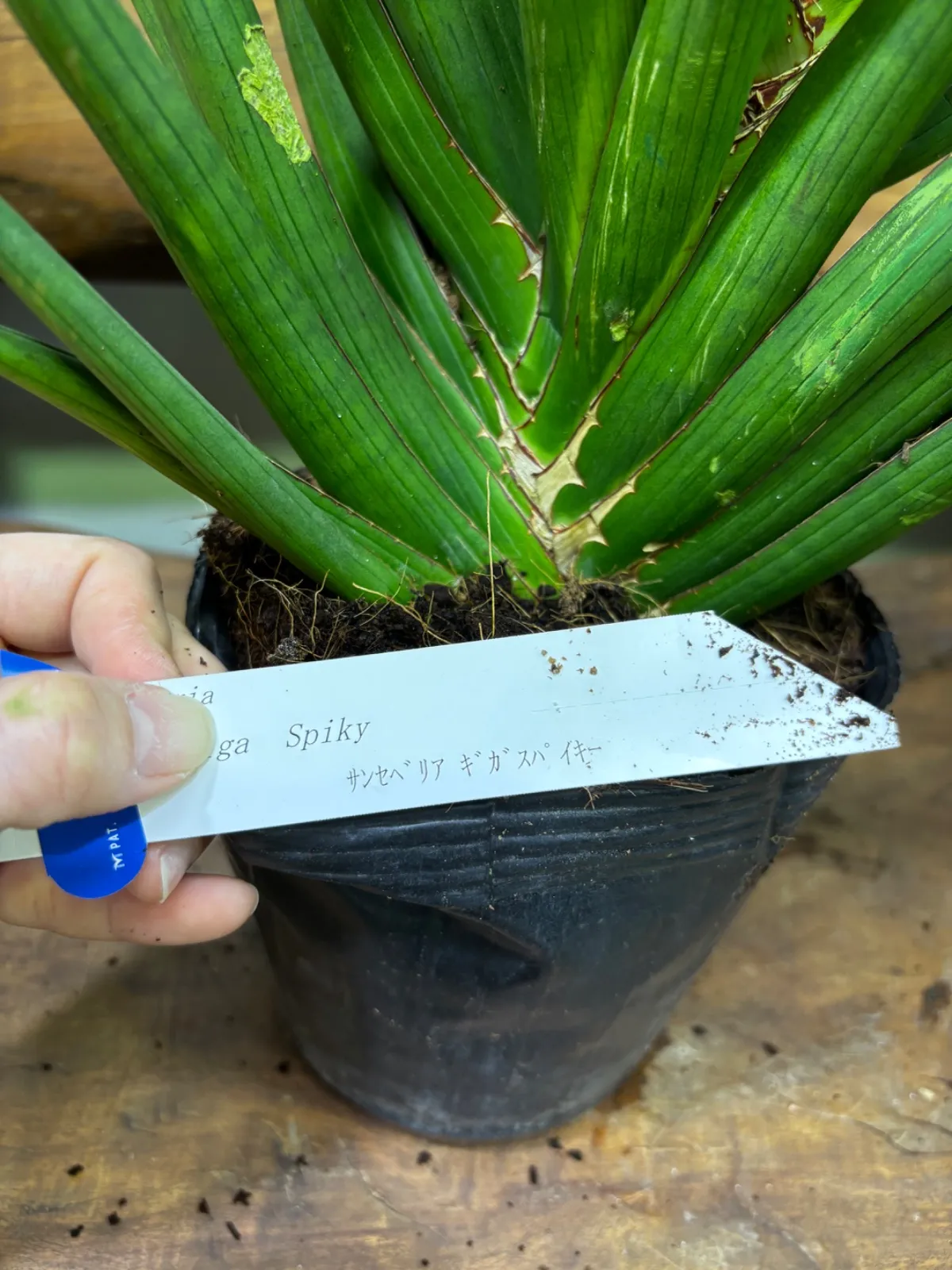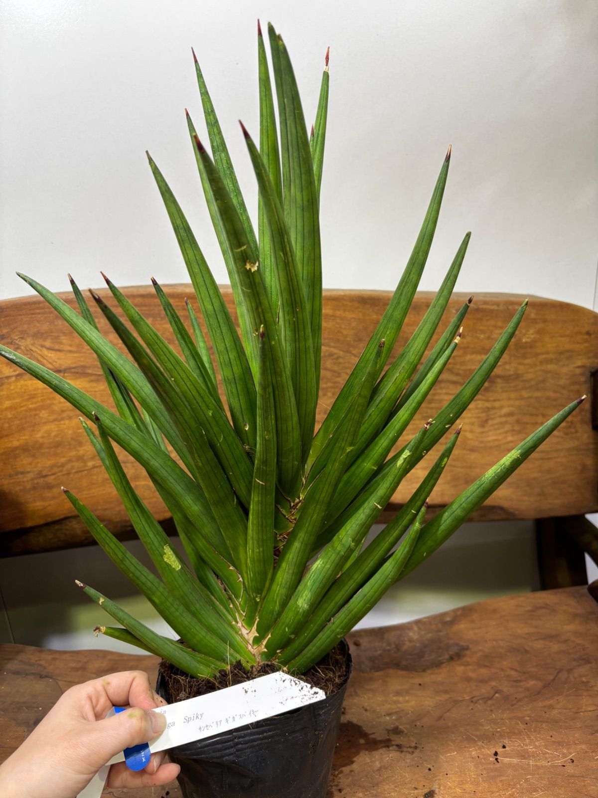 サンスベリア・ギガスパイキーは、棒状葉が放射状に伸びてゆく、流通量の少ないレアな品種です。