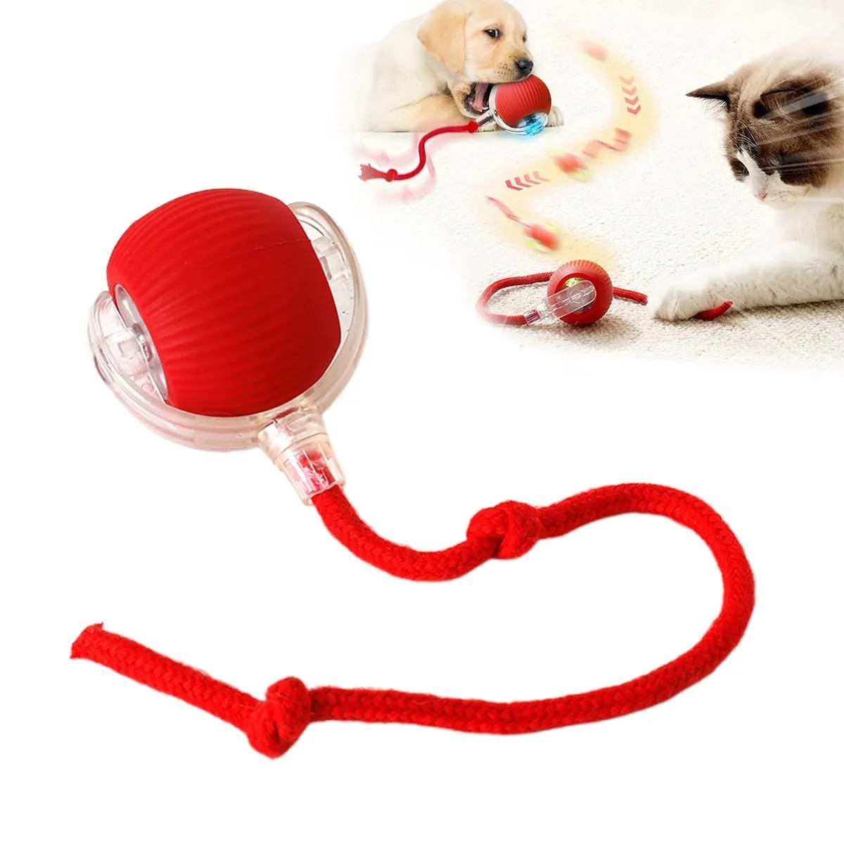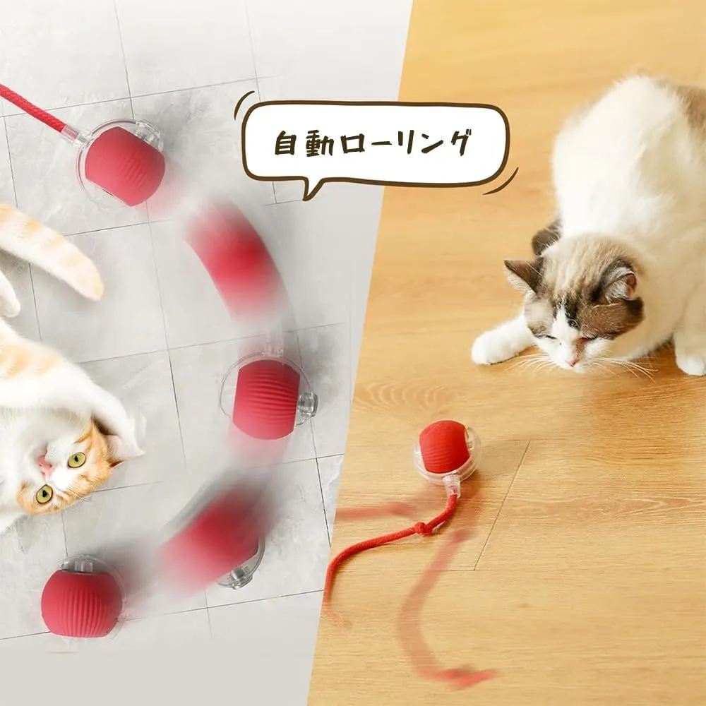UrbanPulse 猫 おもちゃ ボール 自動 動く 電動おもちゃ 自動回転 光る 3モード スマート自動ローリング USB充電式 充電ケーブル付き 猫 玩具 留守番の暇を潰す 運動不足解消 ストレス解消 ペット 猫のおもちゃ (赤+長い尾)