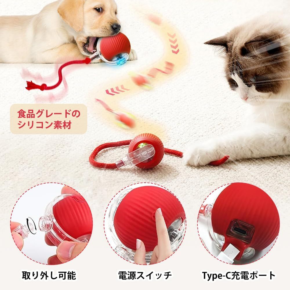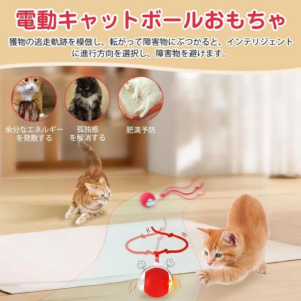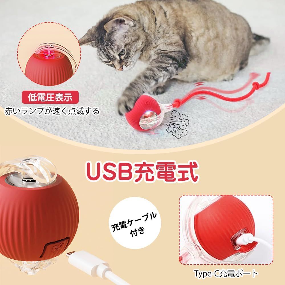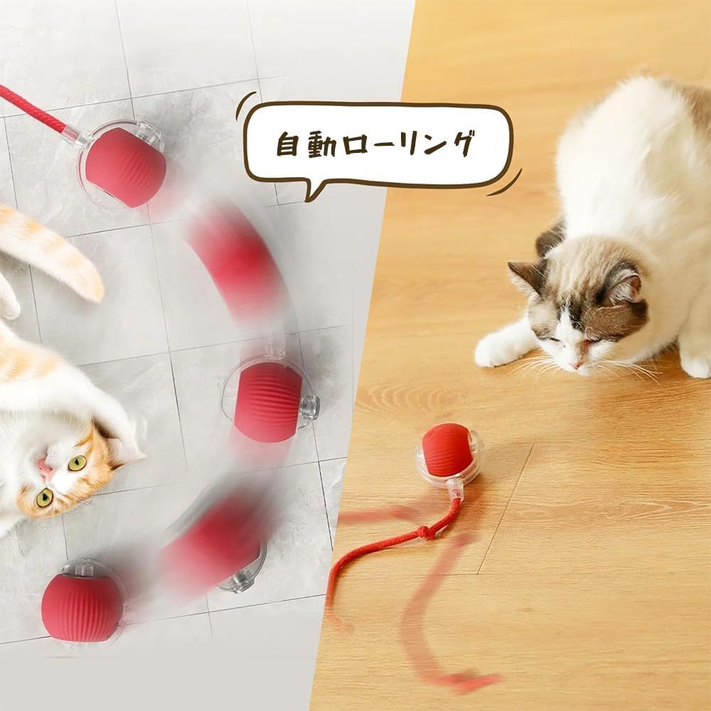 USB充電式 スマート自動ローリング 充電ケーブル付き 3モード 猫 猫 光る 玩具 自動回転 留守番の暇を潰す 電動おもちゃ 運動不足解消 動く ストレス解消 自動 ペット ボール 猫のおもちゃ おもちゃ (赤+長い尾) UrbanPulse